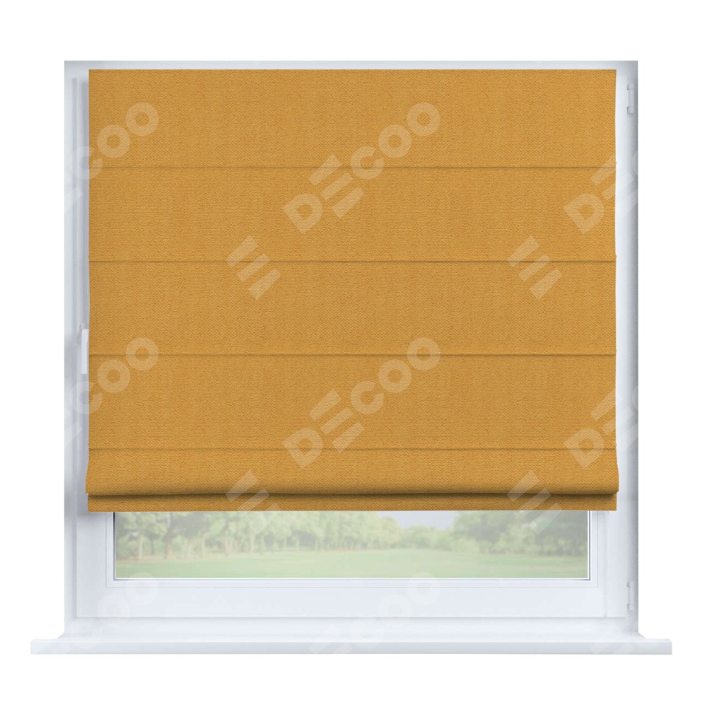 Римская штора производителя «Cortin», устанавливается на створку окна, пошита из ткани блэкаут тиснение с блеском золотой, артикул 34626. Изнаночная сторона материала черного цвета, что обеспечивает необходимую светонепроницаемость. Штора шьётся по индивидуальным размерам, для данного типа римской шторы возможная ширина от 35 до 150 см., высота до 250 см.