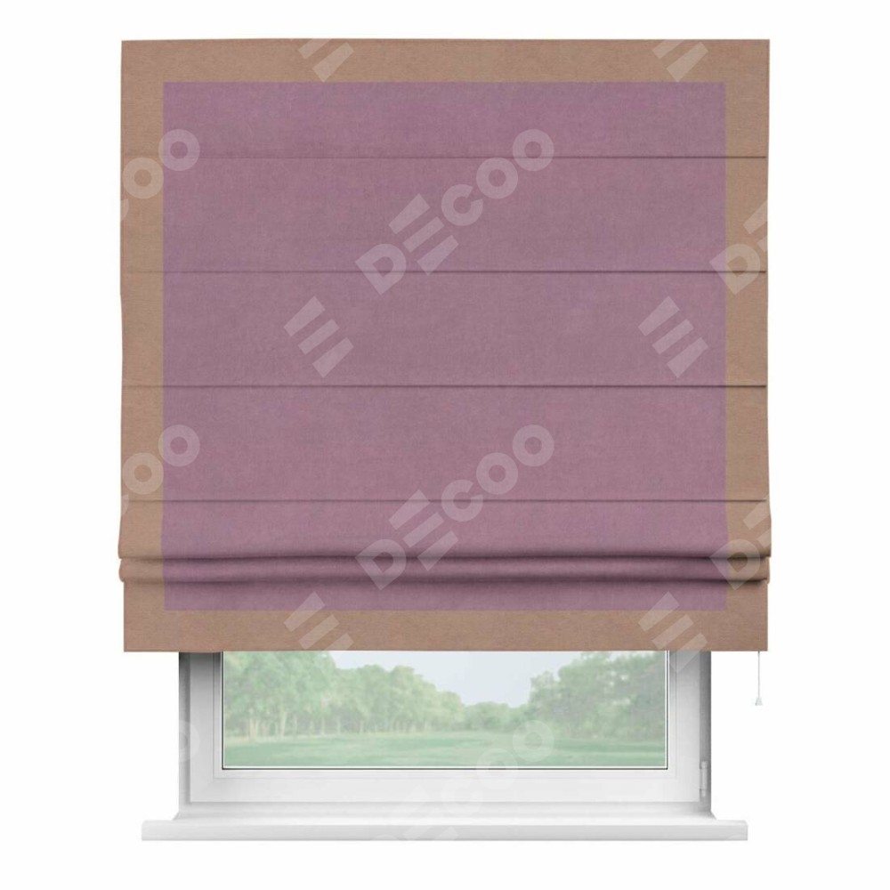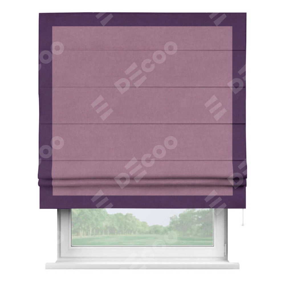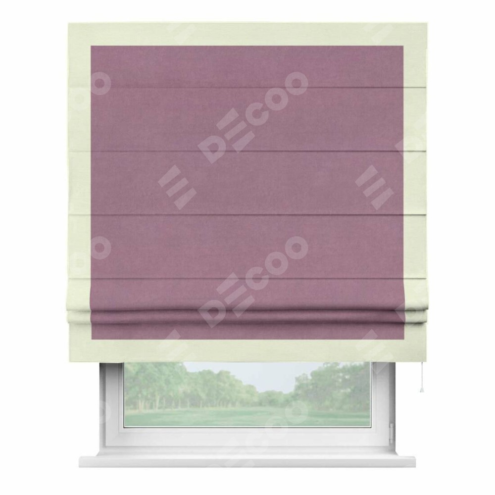 Римская штора «Кортин» с кантом Чесс, для проема, ткань вельвет лиловый