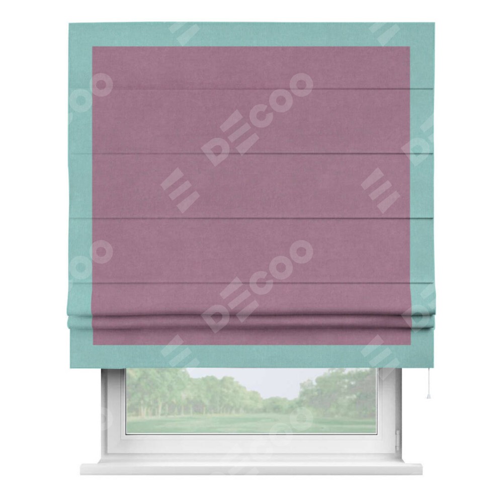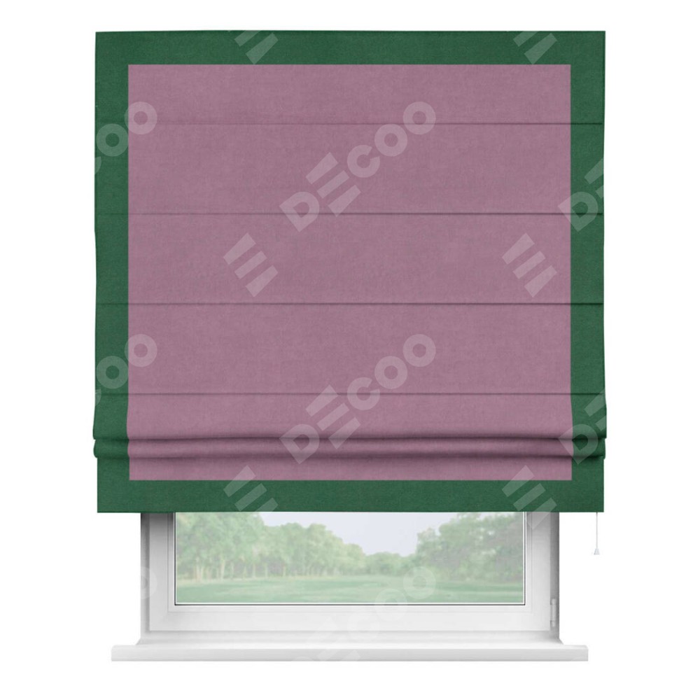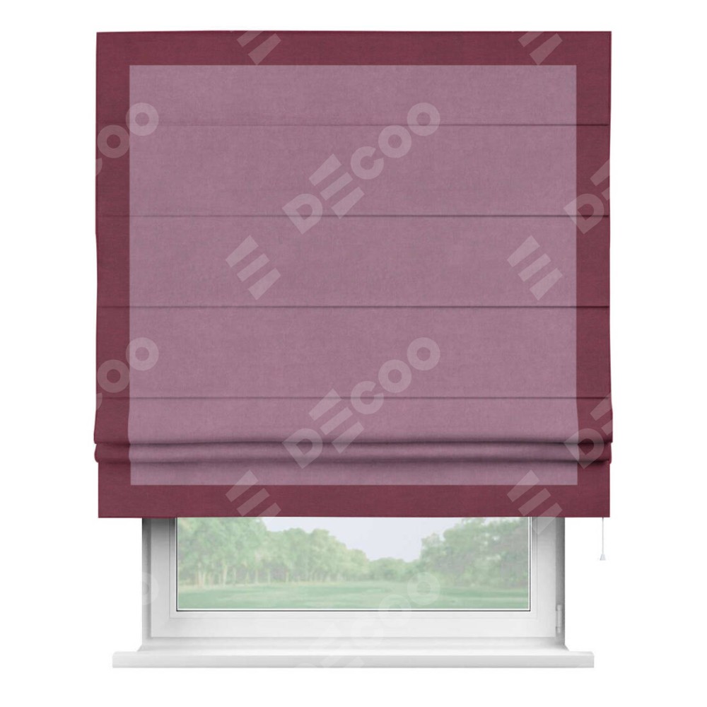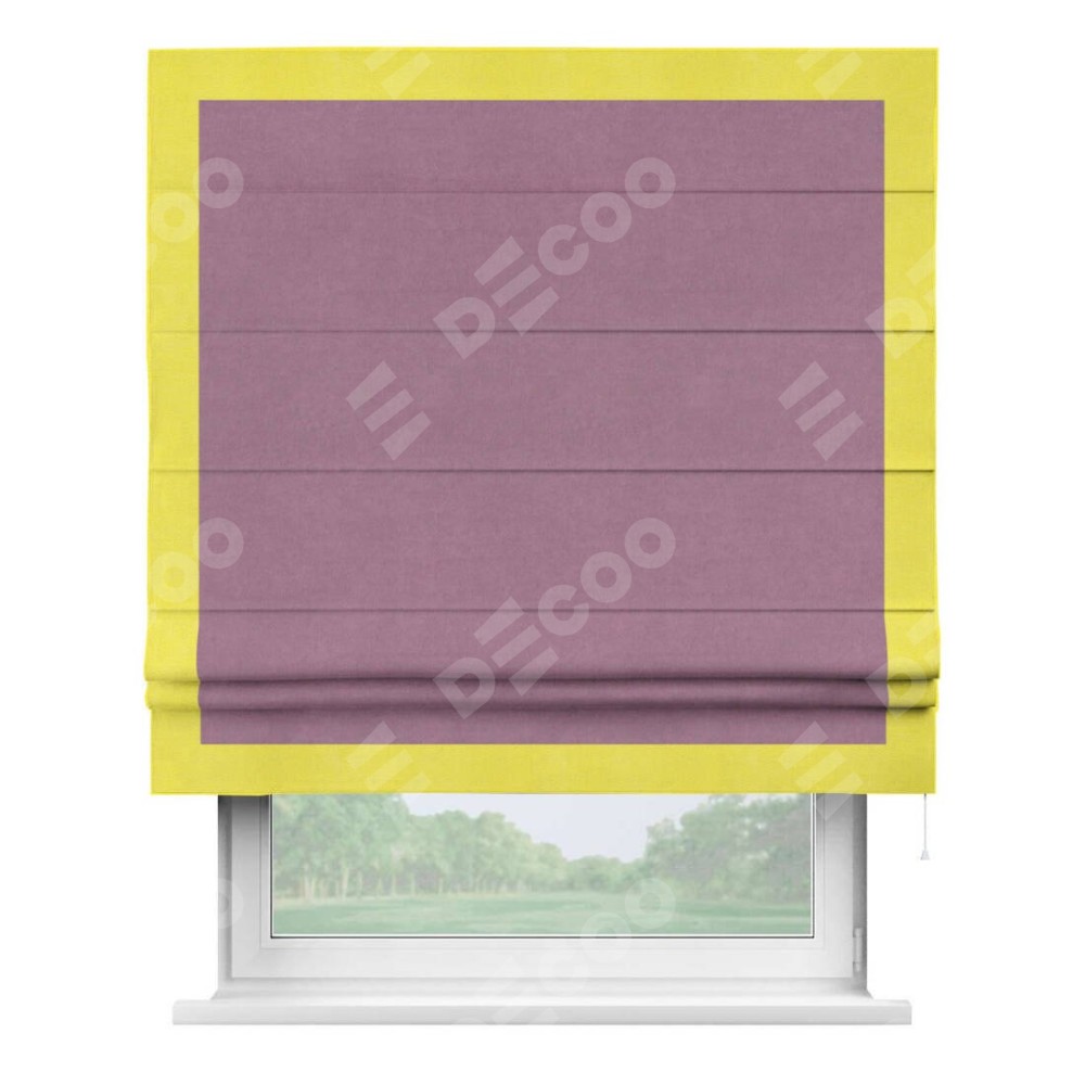 Римская штора «Кортин» с кантом Чесс, для проема, ткань вельвет лиловый