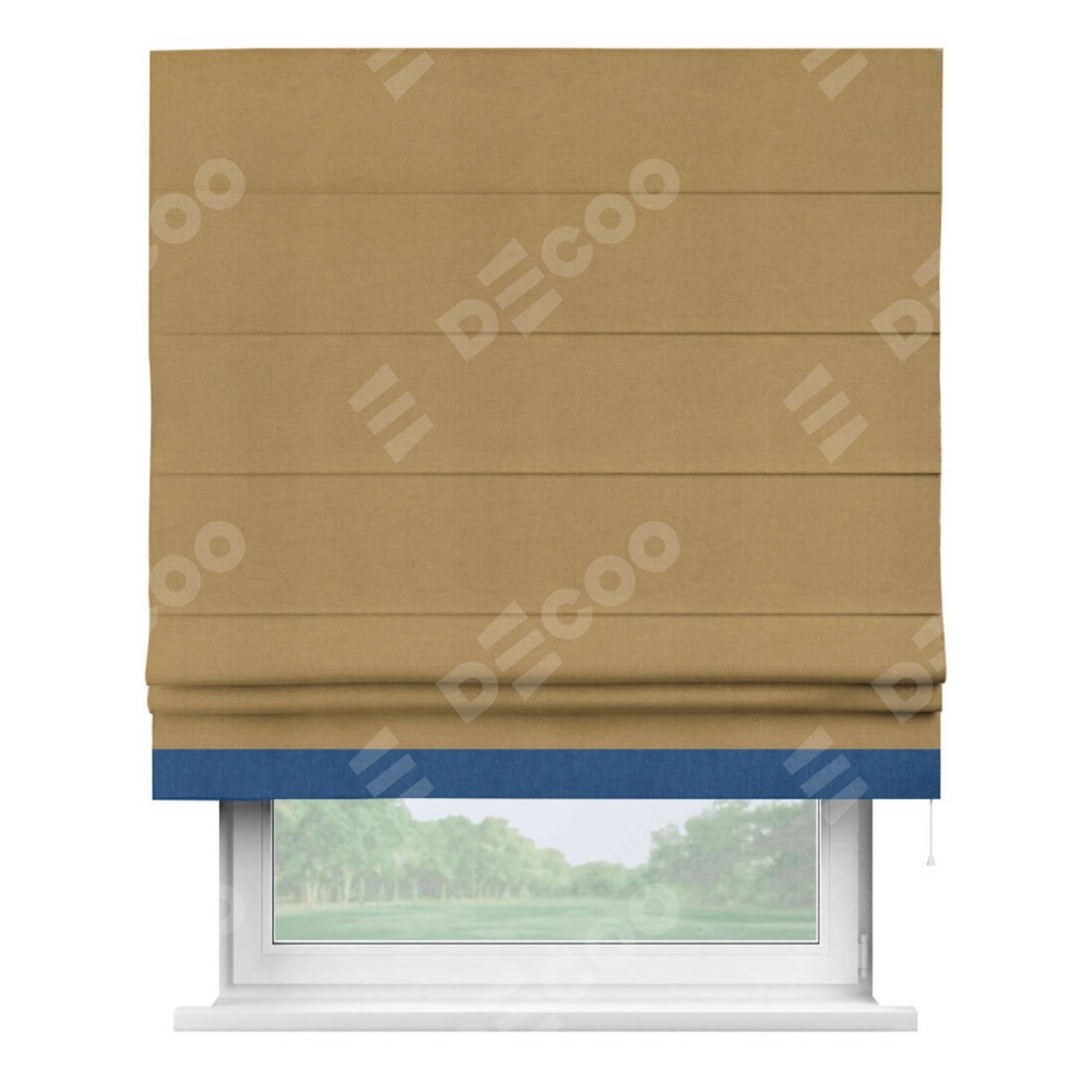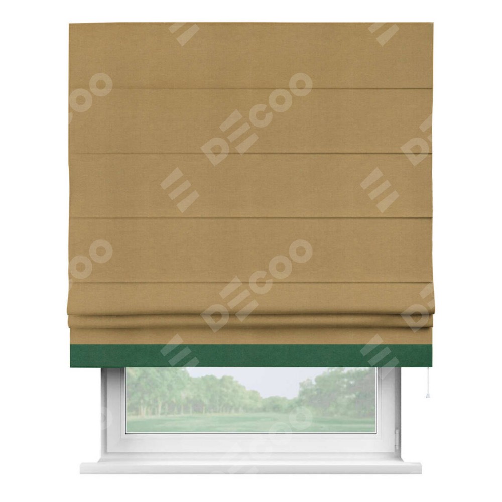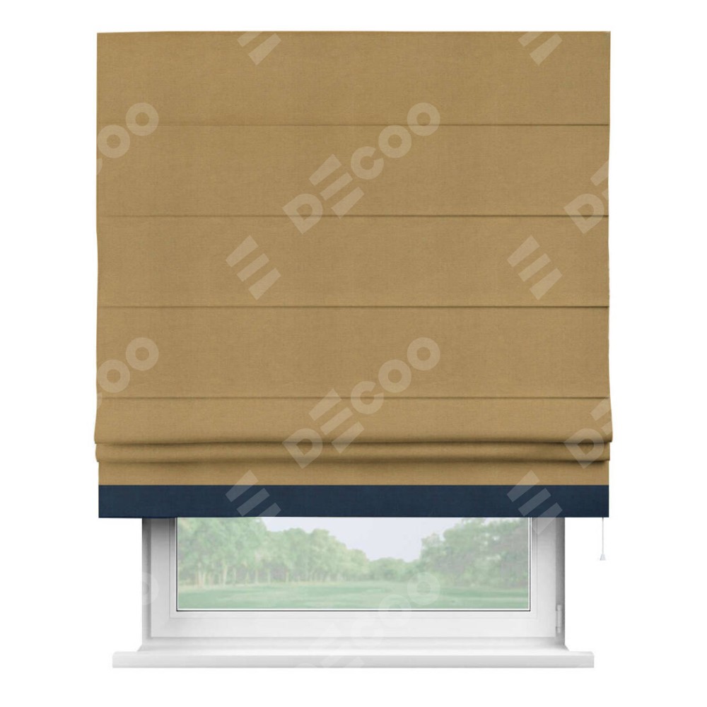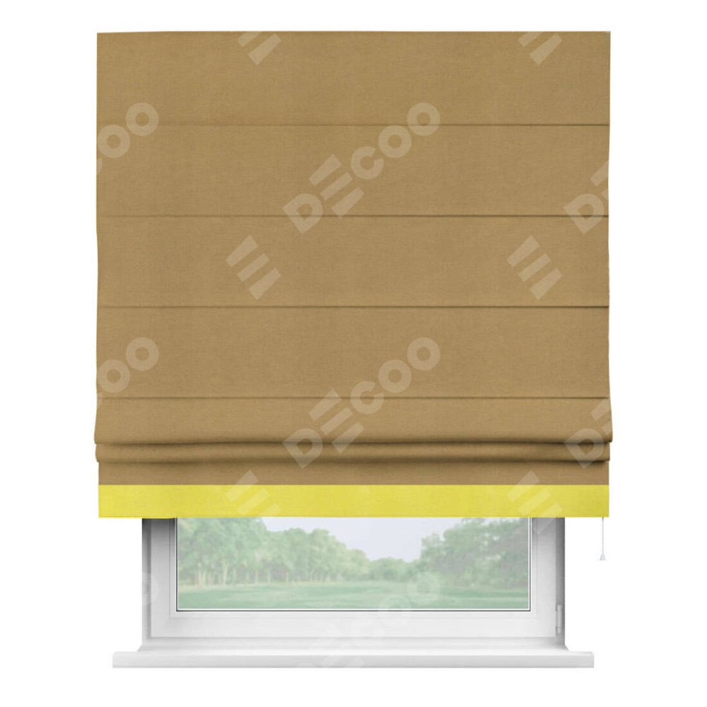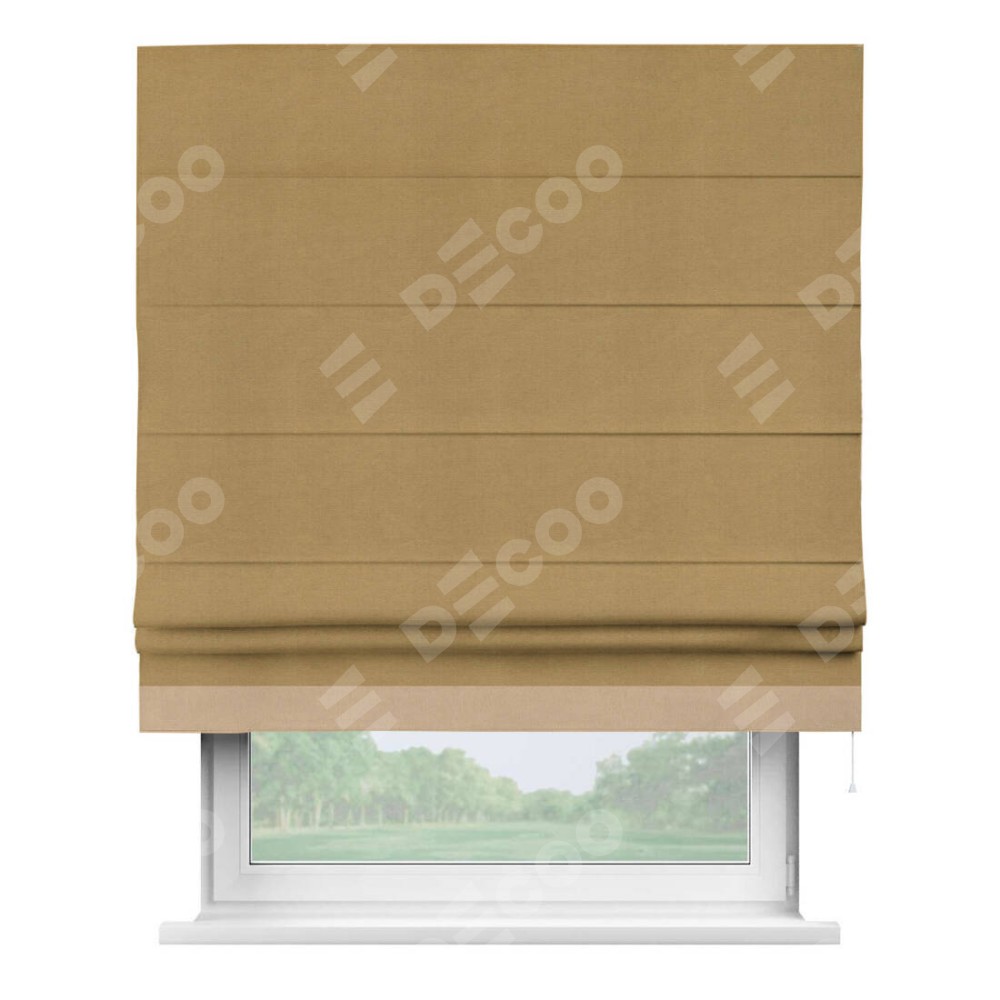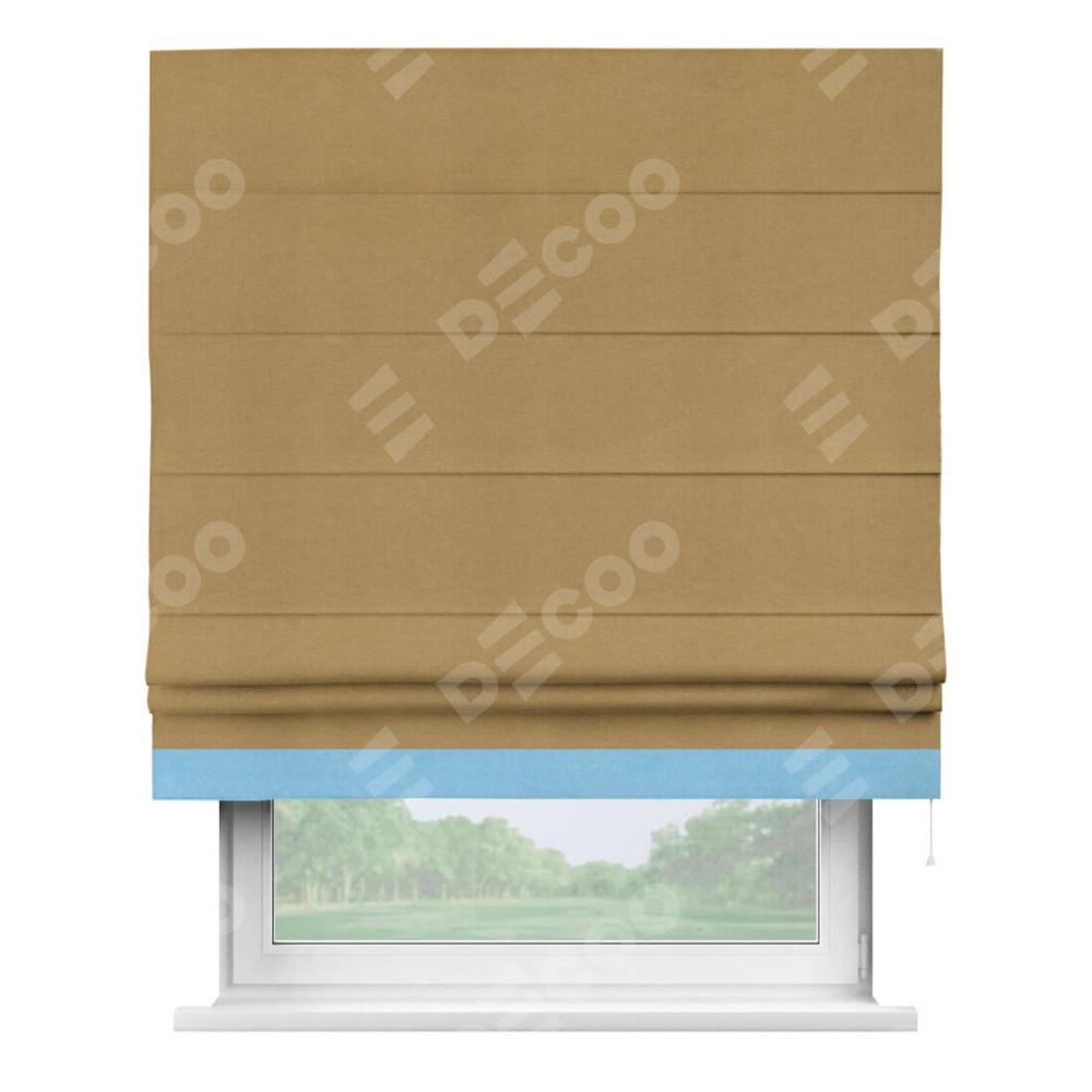 Римская штора производителя «Cortin», используется для проёма, пошита из ткани вельвет горчица, артикул ткани 17760. Отделка шторы кантом «Джестер», ткань для канта используется из вельвета разной расцветки на выбор. Имеет универсальный механизм и подходит для монтажа: на потолок, на стену и в нишу.