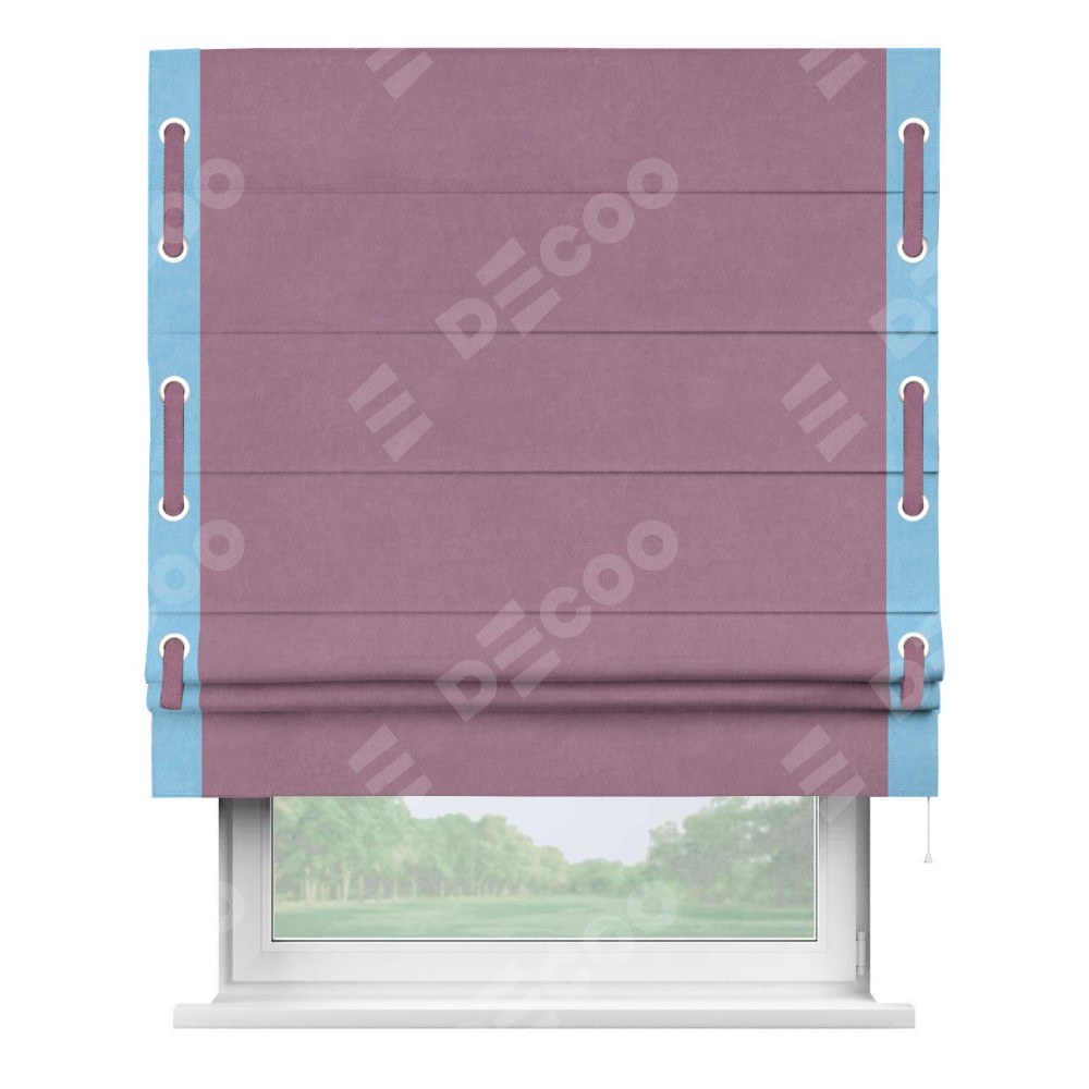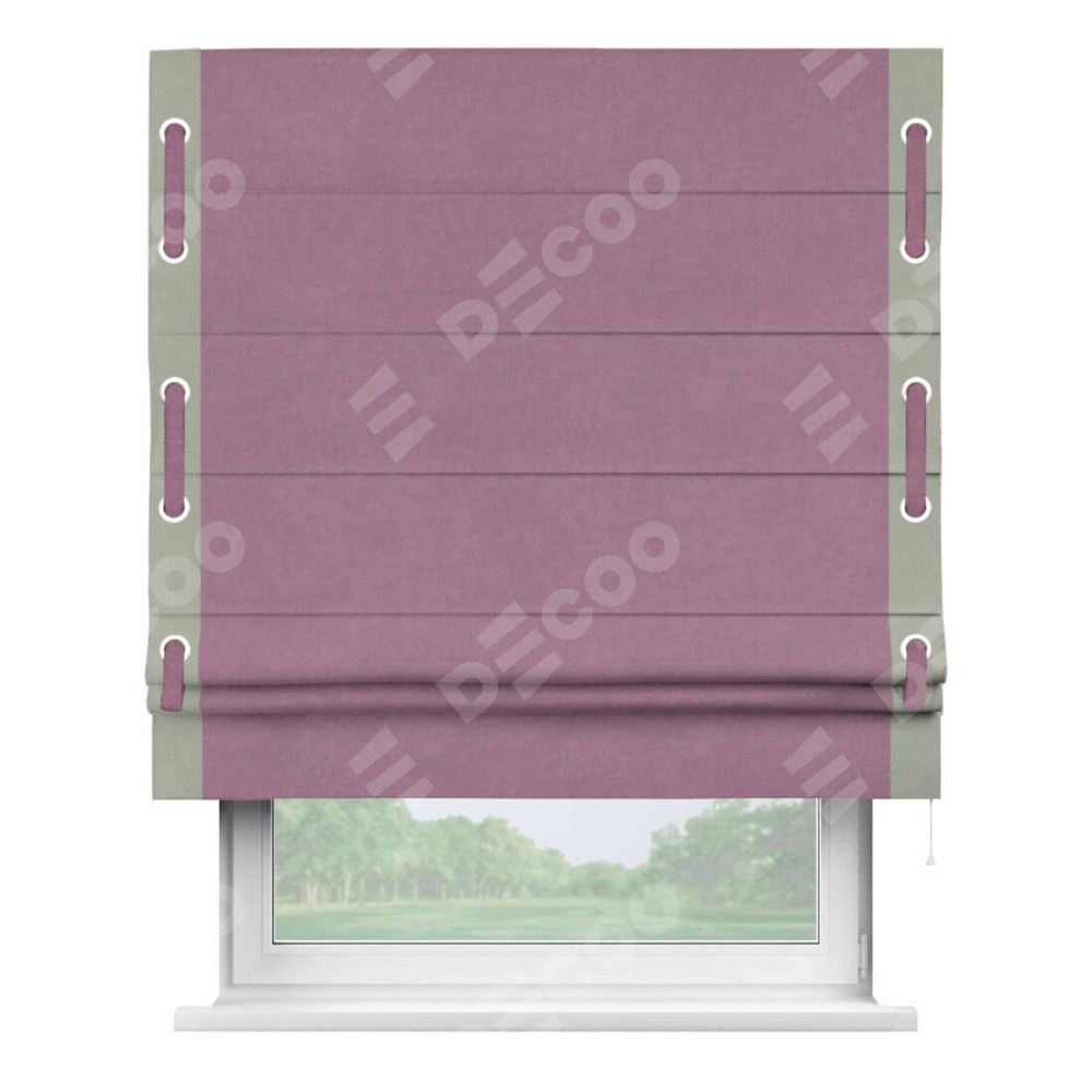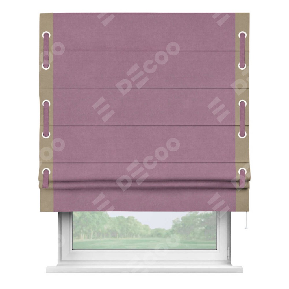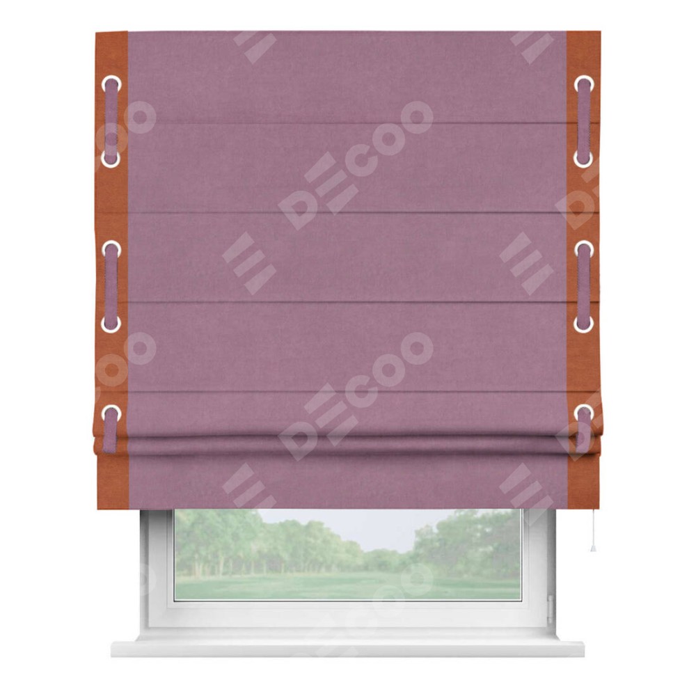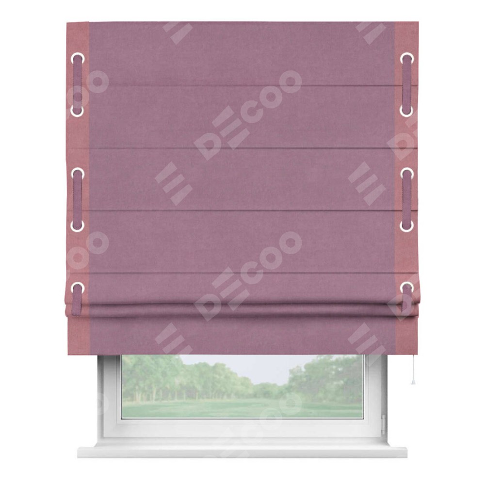 Римская штора «Кортин» с кантом Стрим Дуо (люверсы с пояском), для проема, ткань вельвет лиловый