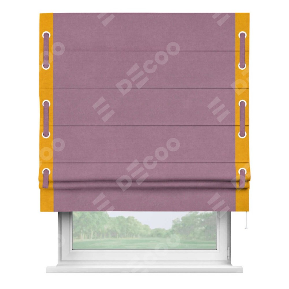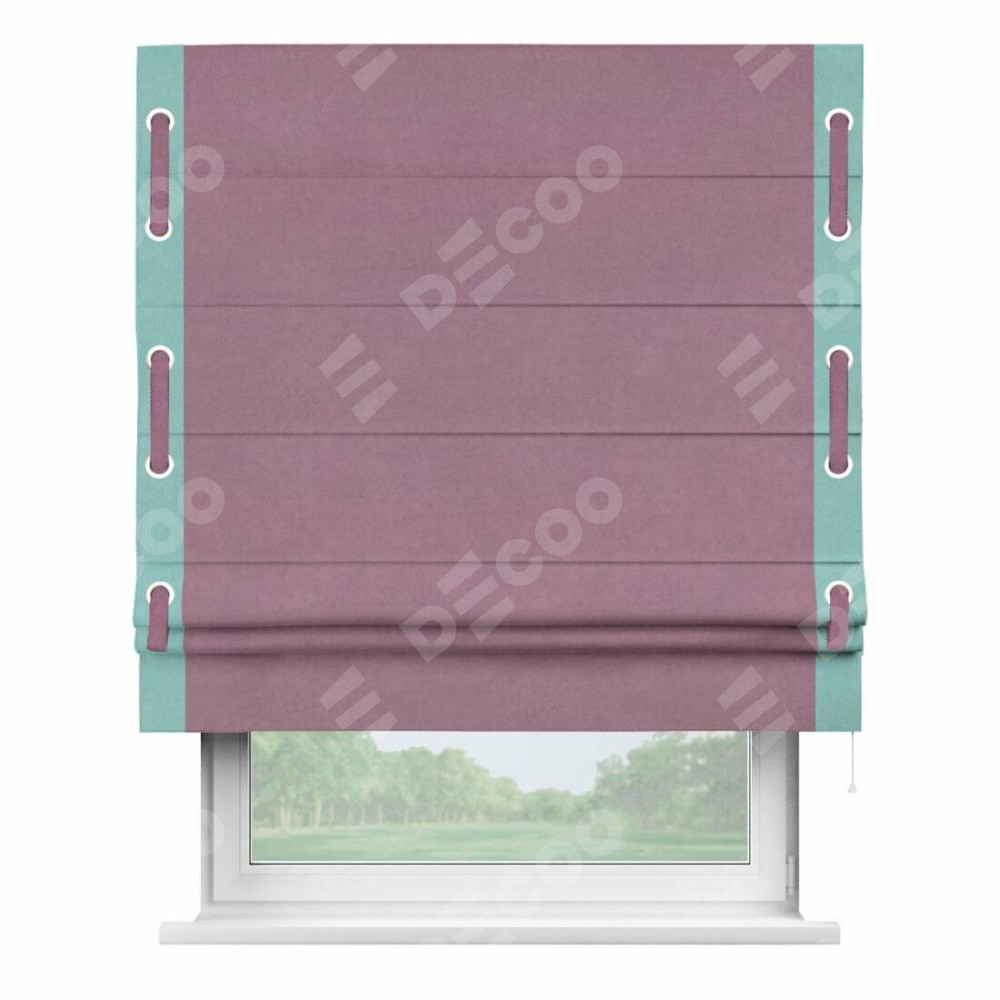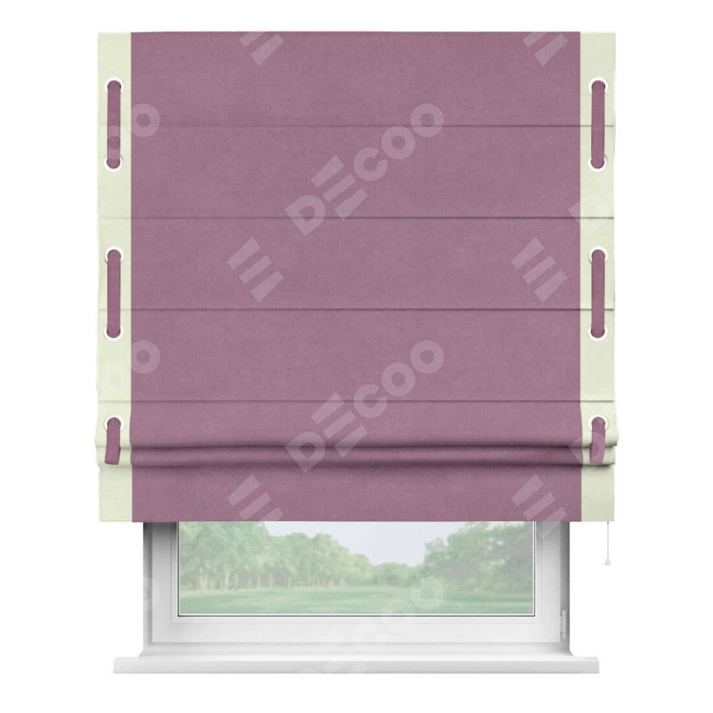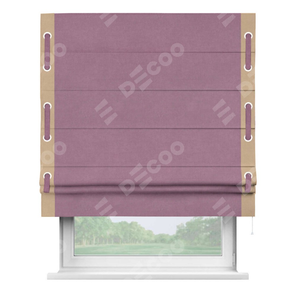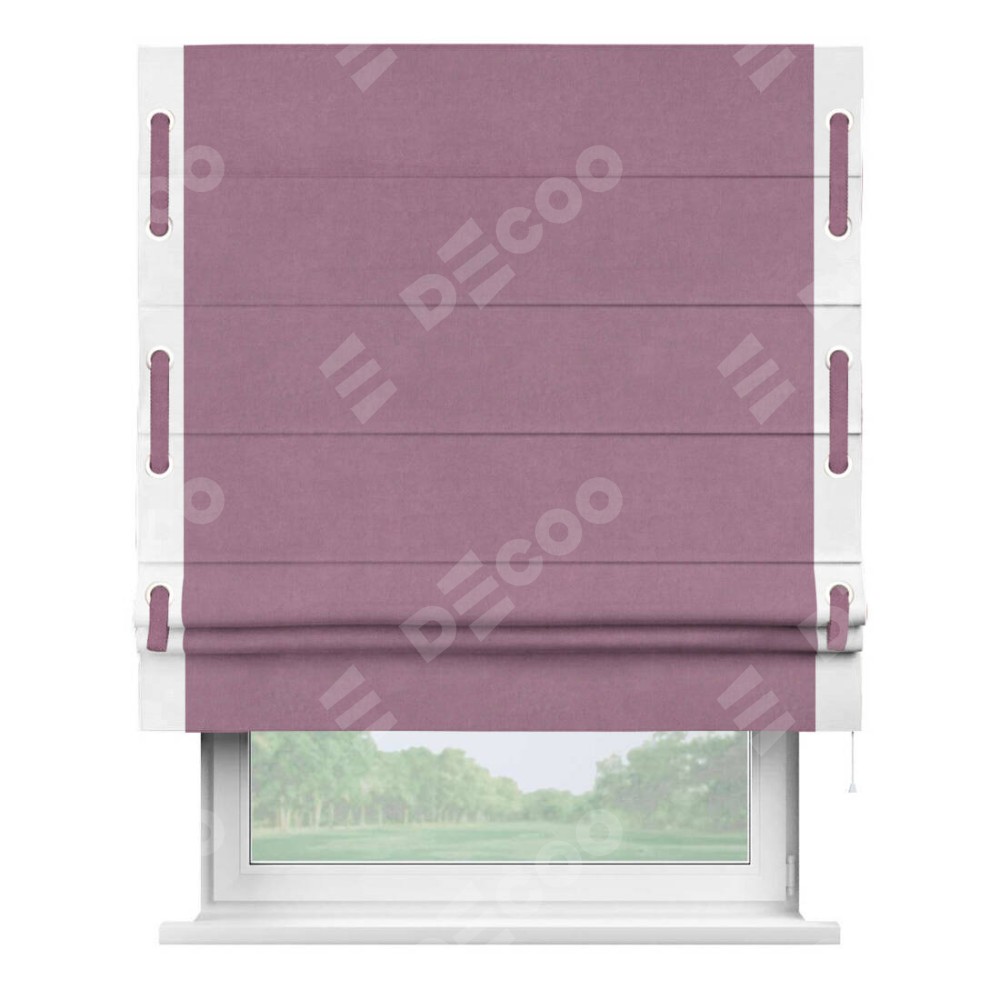 Римская штора «Кортин» с кантом Стрим Дуо (люверсы с пояском), для проема, ткань вельвет лиловый