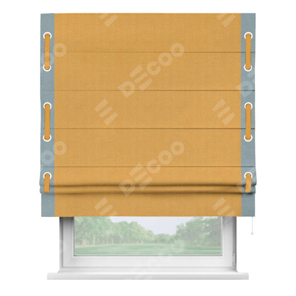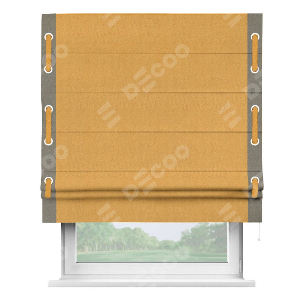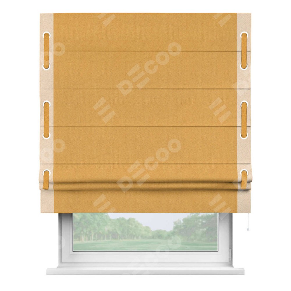 Римская штора «Кортин» с кантом Стрим Дуо (люверсы с пояском), для проема, ткань блэкаут с блеском золотой