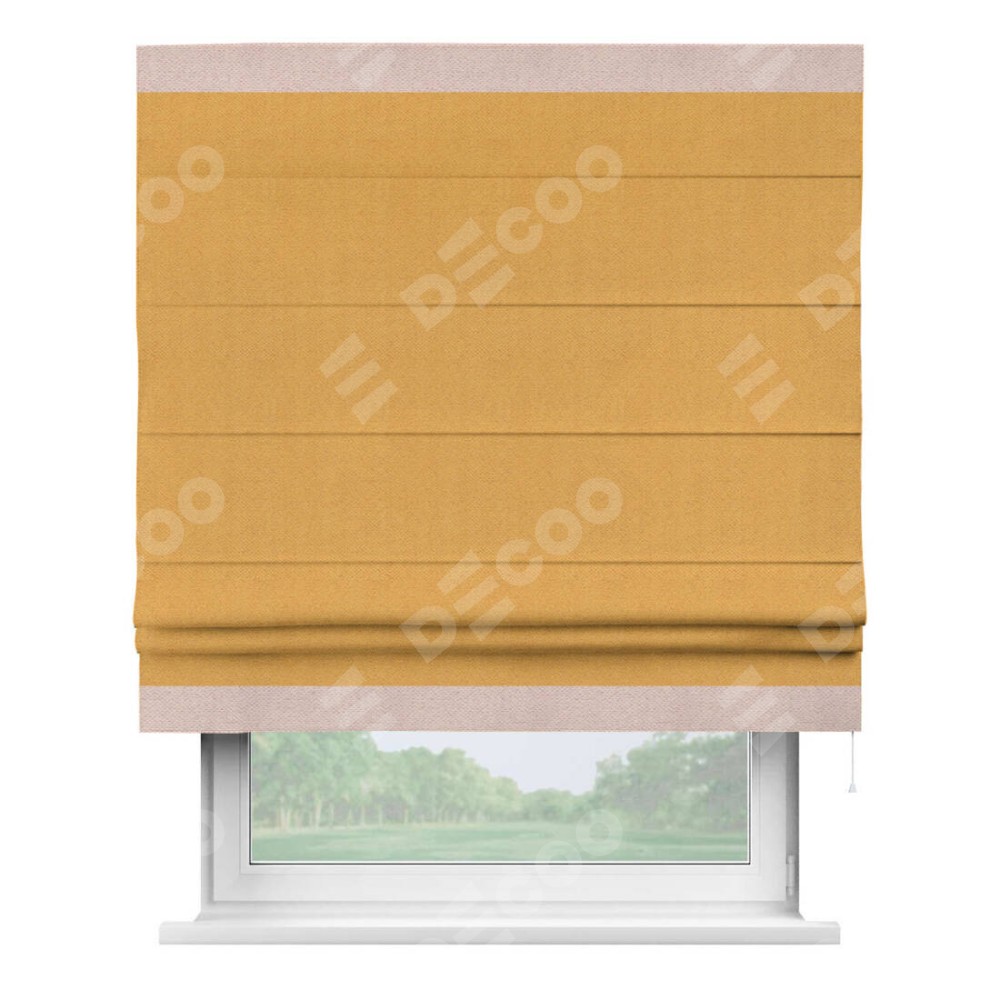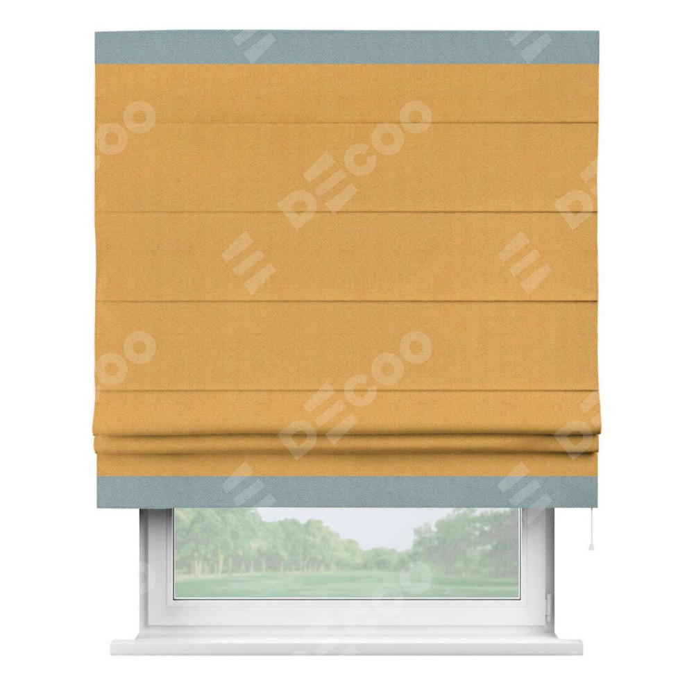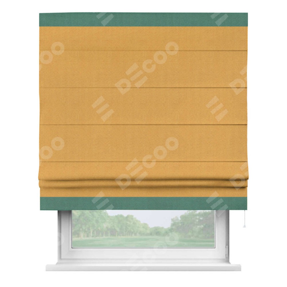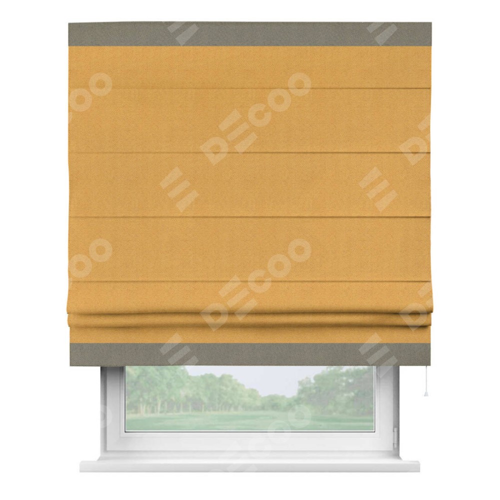 Римская штора «Кортин» с кантом Горизонт, для проема, ткань блэкаут с блеском золотой