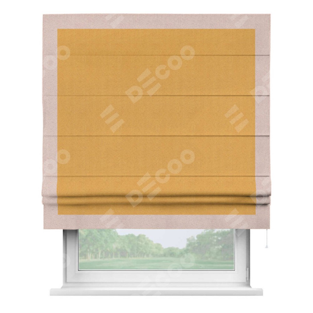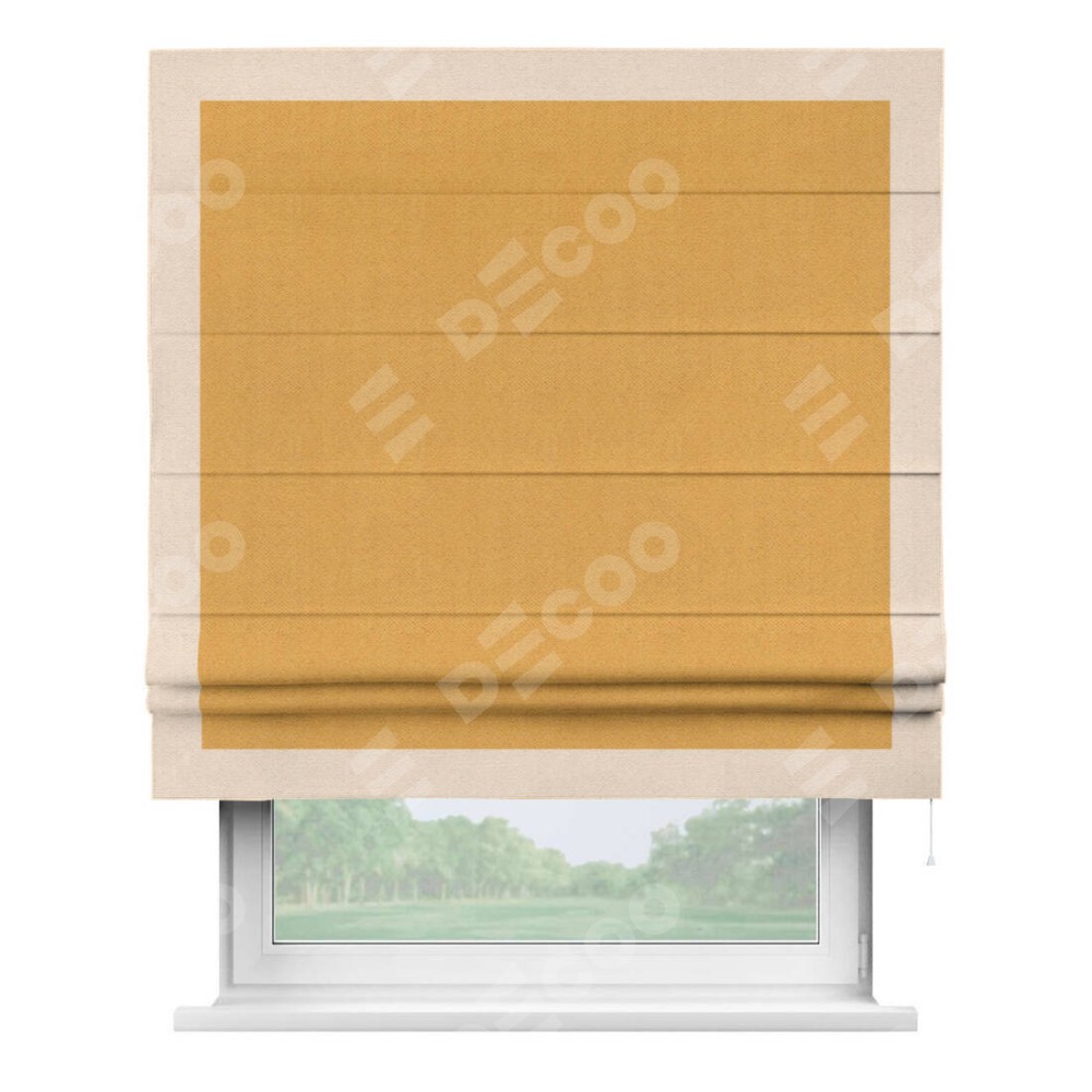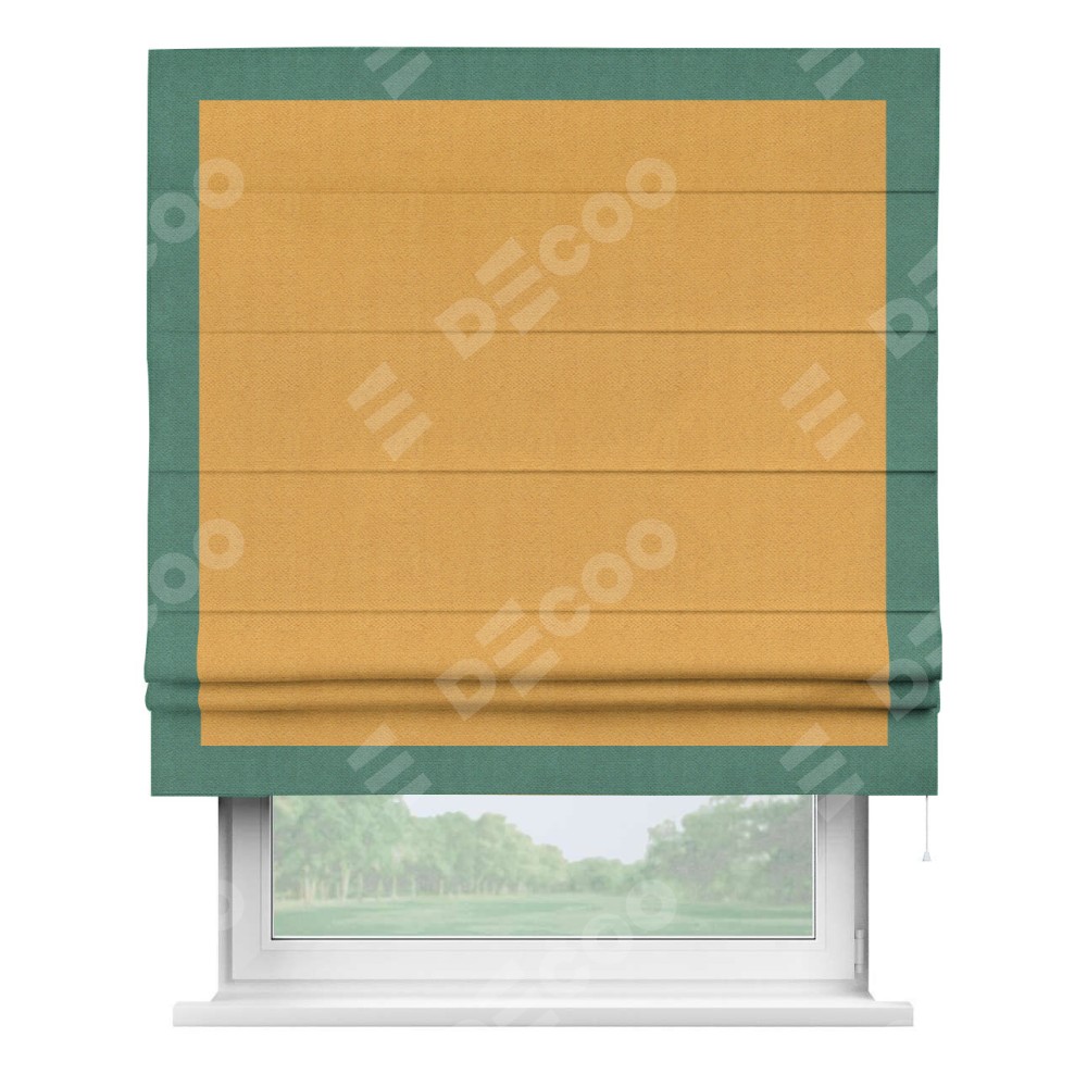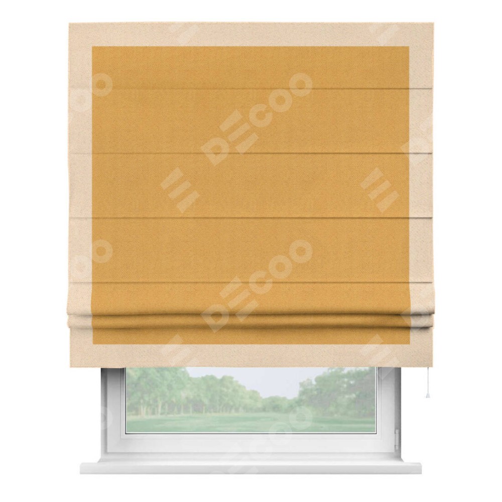 Римская штора «Кортин» с кантом Чесс, для проема, ткань блэкаут с блеском золотой доступна к заказу по по вашим размерам. Рабочий артикул: 19587. Стоимость пошива будет зависеть от выбранных опций и стартует от 4 920 руб. В интернет-магазине Decoo есть возможность выбрать товар в любых размерных вариациях.