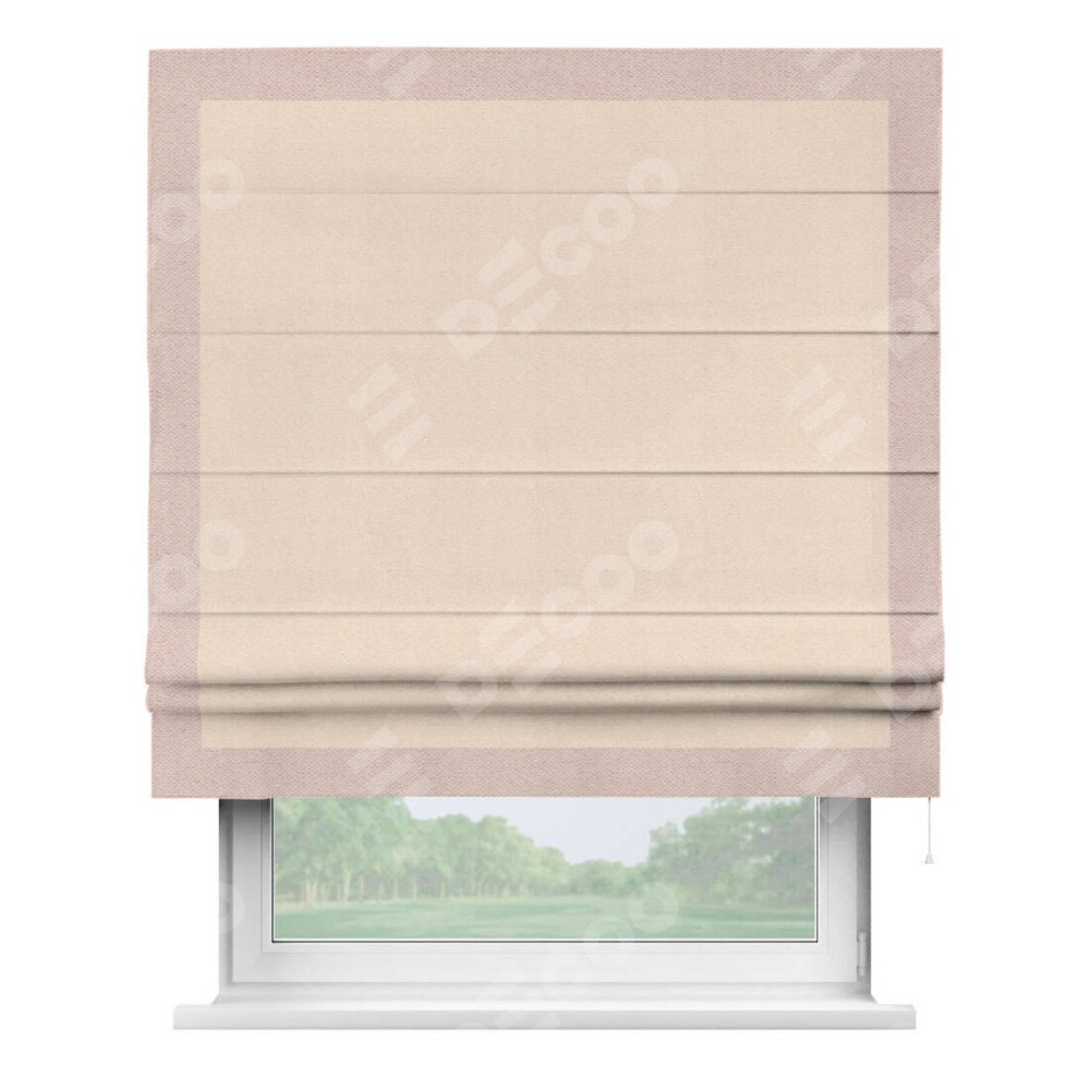 Римская штора «Кортин» с кантом Чесс, для проема, ткань блэкаут с блеском розовая пудра