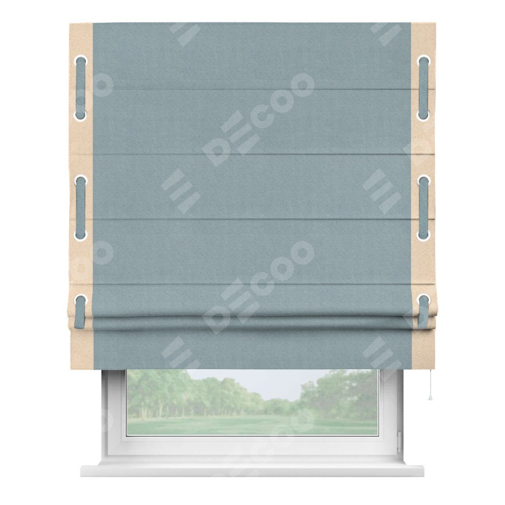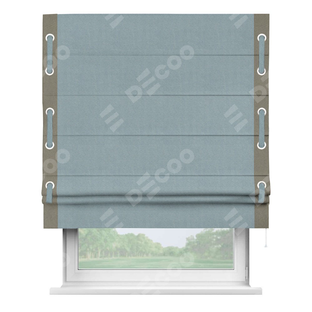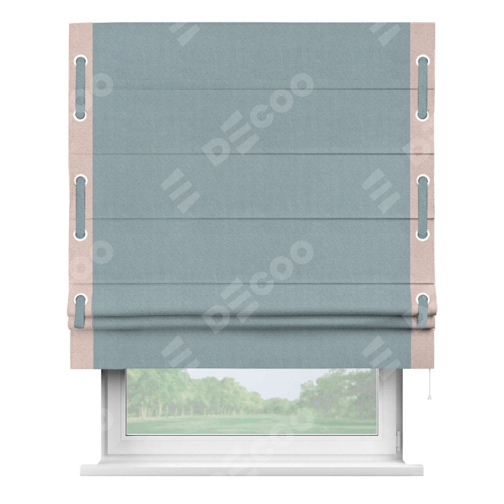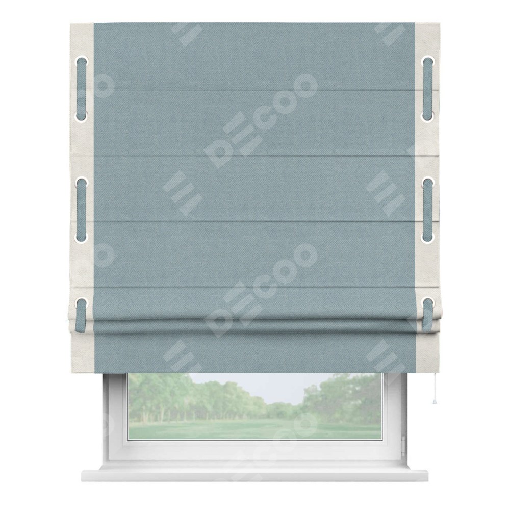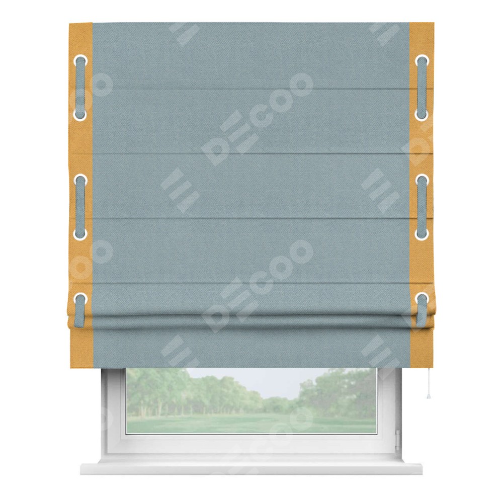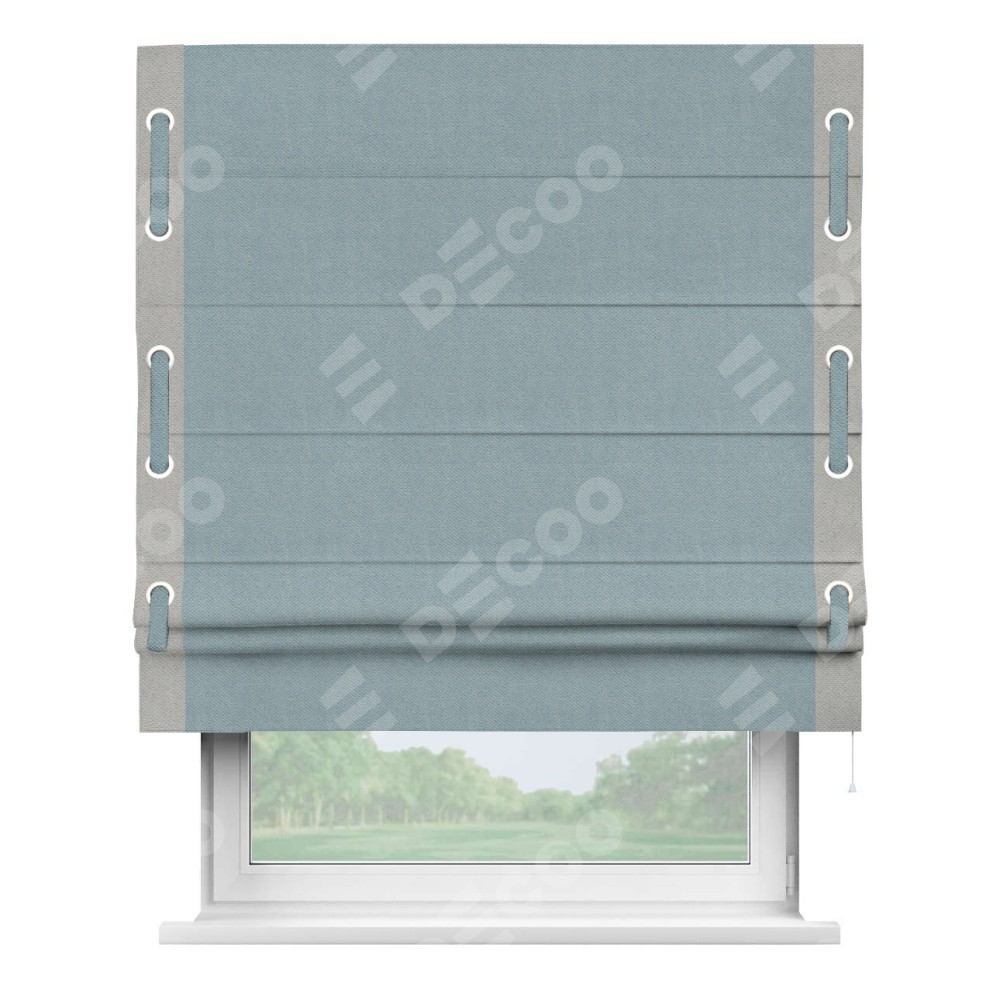 Римская штора «Кортин» с кантом Стрим Дуо (люверсы с пояском), для проема, ткань блэкаут с блеском синий
