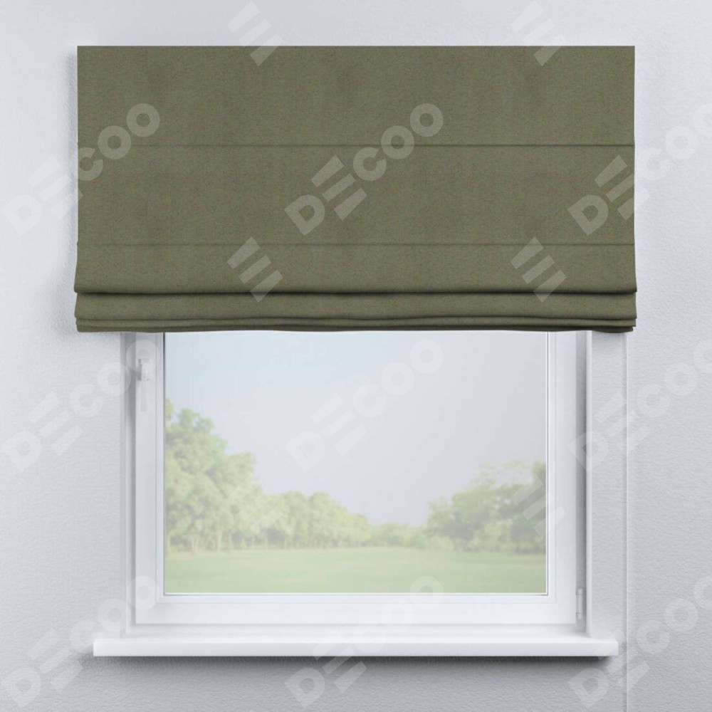 Римская штора производителя «Cortin», используется для проёма, пошита из ткани блэкаут однотонный серо-коричневый, артикул ткани 29568. Имеет универсальный механизм и подходит для монтажа: на потолок, на стену и в нишу.