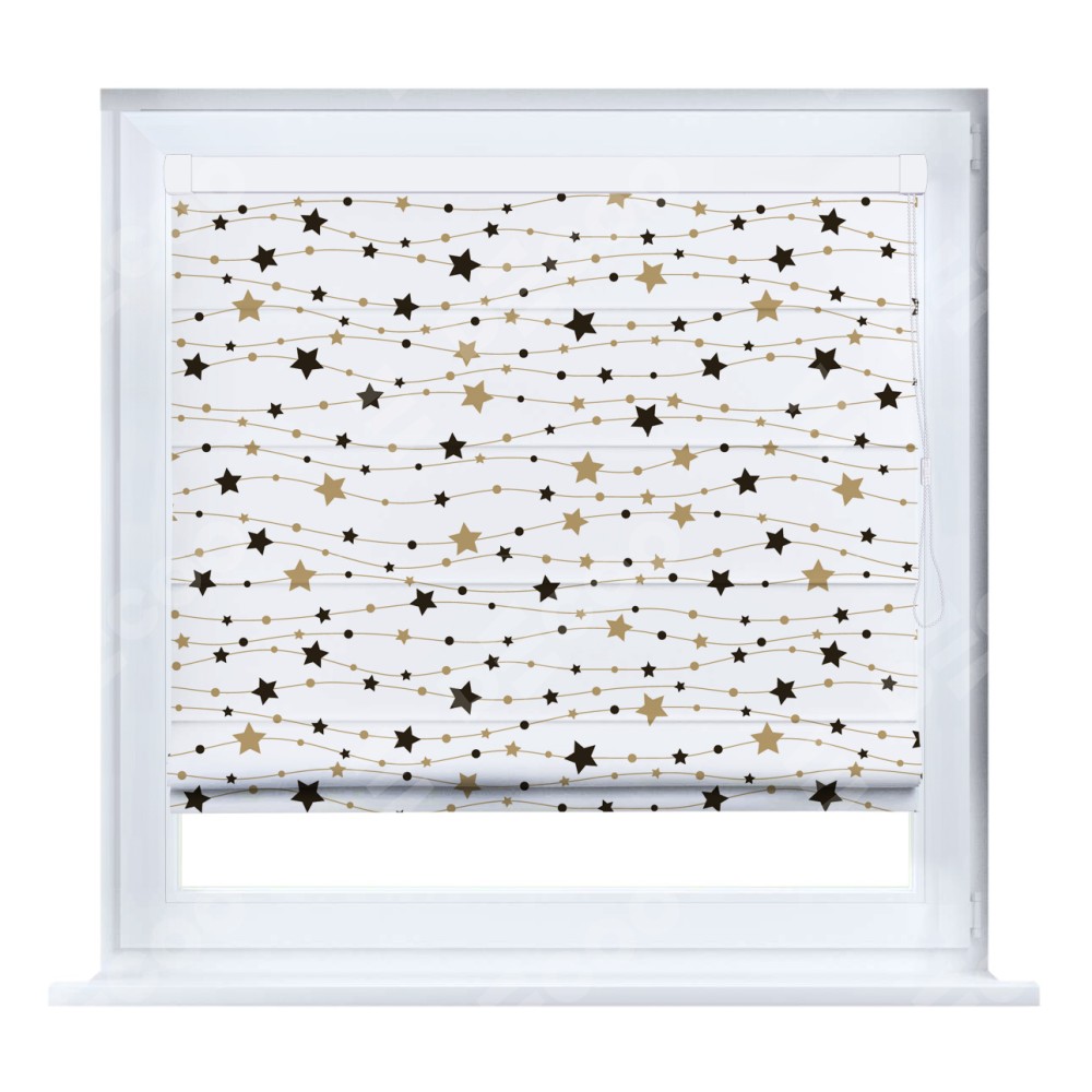 Римская штора производителя «Cortin», устанавливается на створку окна, пошита из ткани блэкаут с нанесением сублимационной печати «Звёздная нить». Штора шьётся по индивидуальным размерам, для данного типа римской шторы возможная ширина от 35 до 150 см., высота до 250 см.