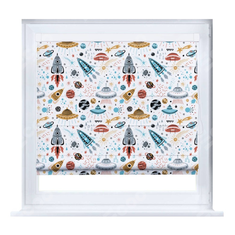 Римская штора «Кортин» на створку «Космическое приключение» предоставлена в следующих характеристиках: