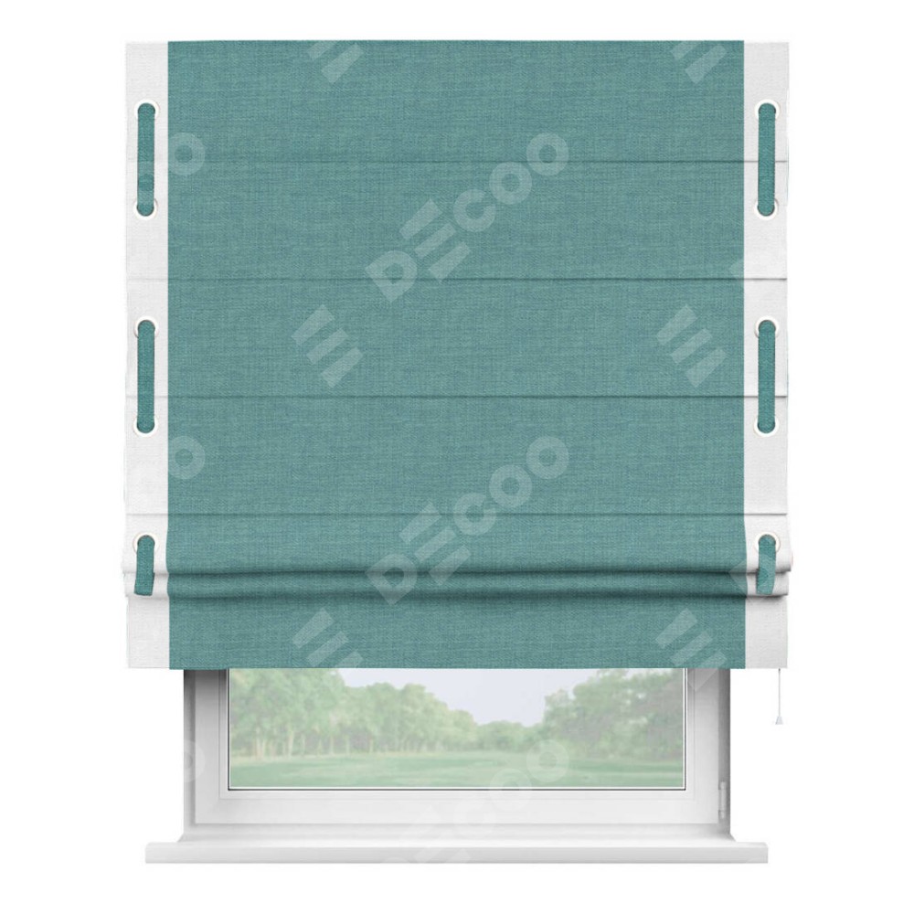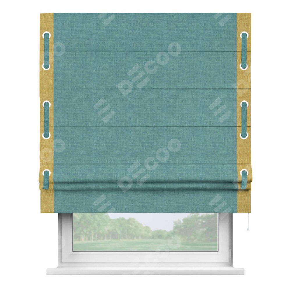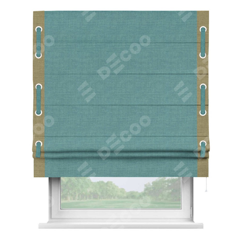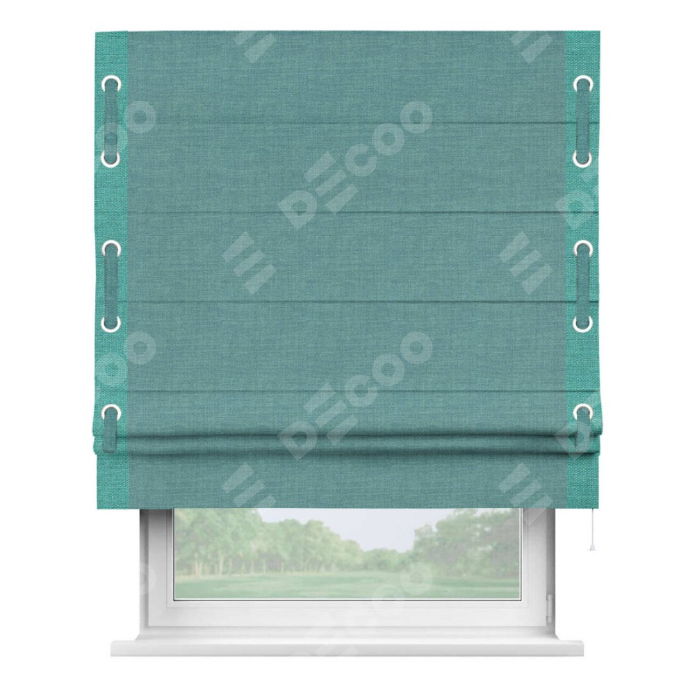 Римская штора «Кортин» с кантом Стрим Дуо (люверсы с пояском), для проема, ткань лён бирюза