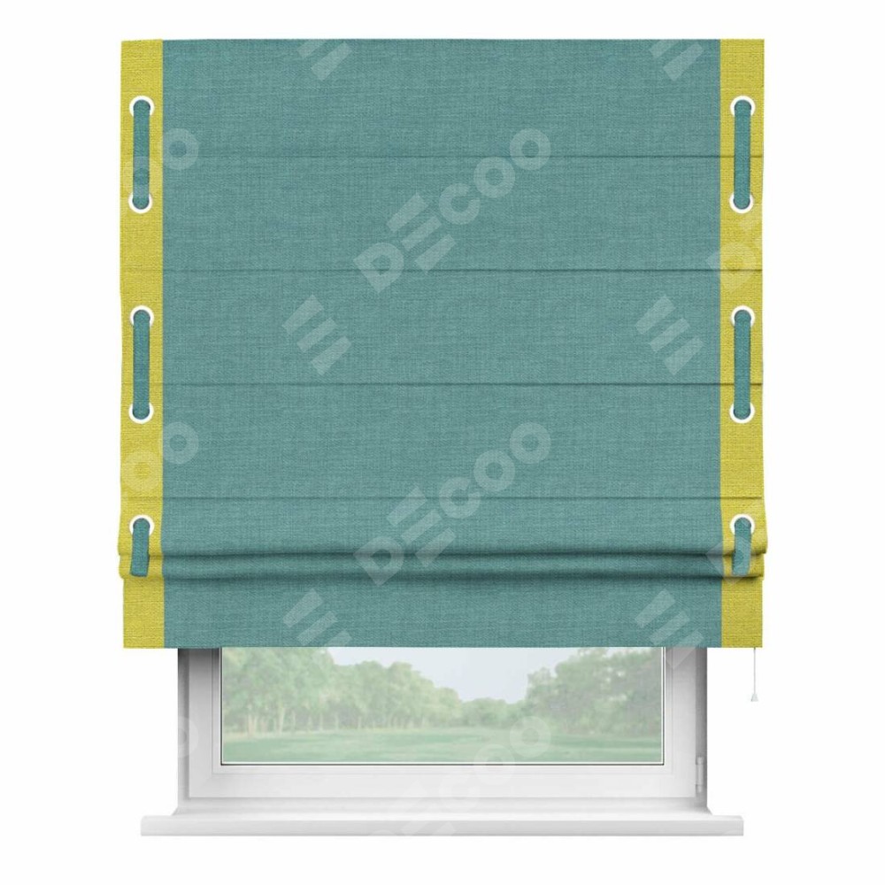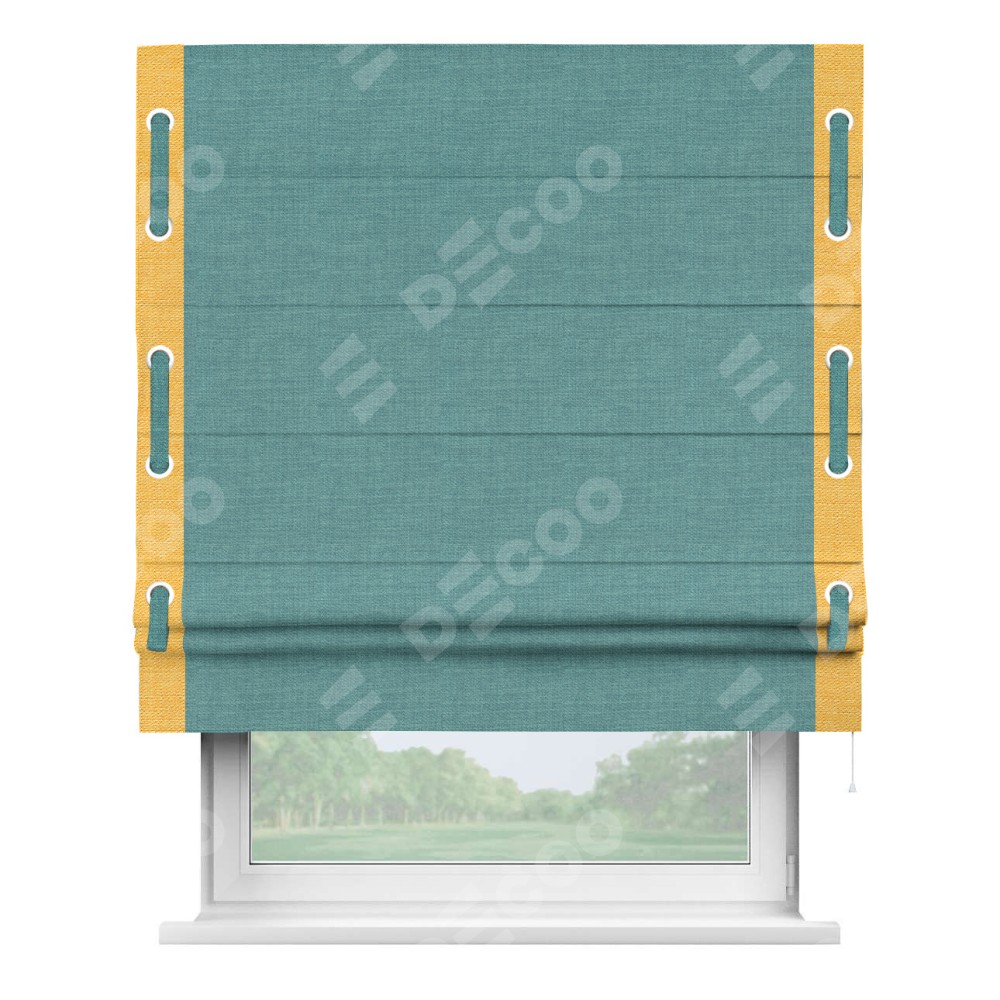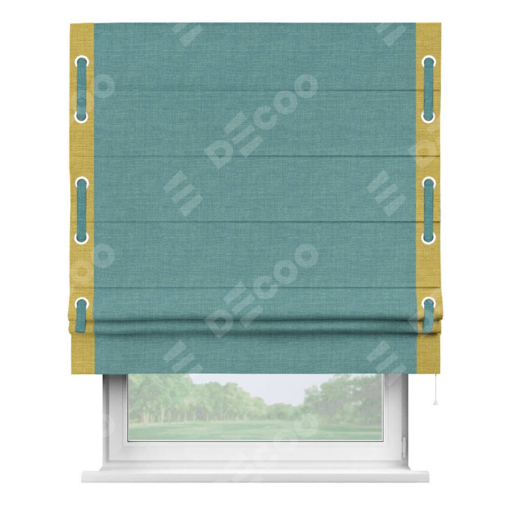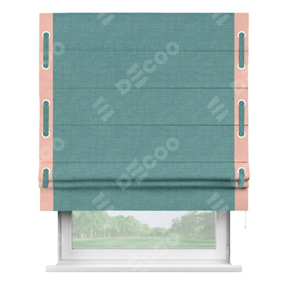 Римская штора «Кортин» с кантом Стрим Дуо (люверсы с пояском), для проема, ткань лён бирюза