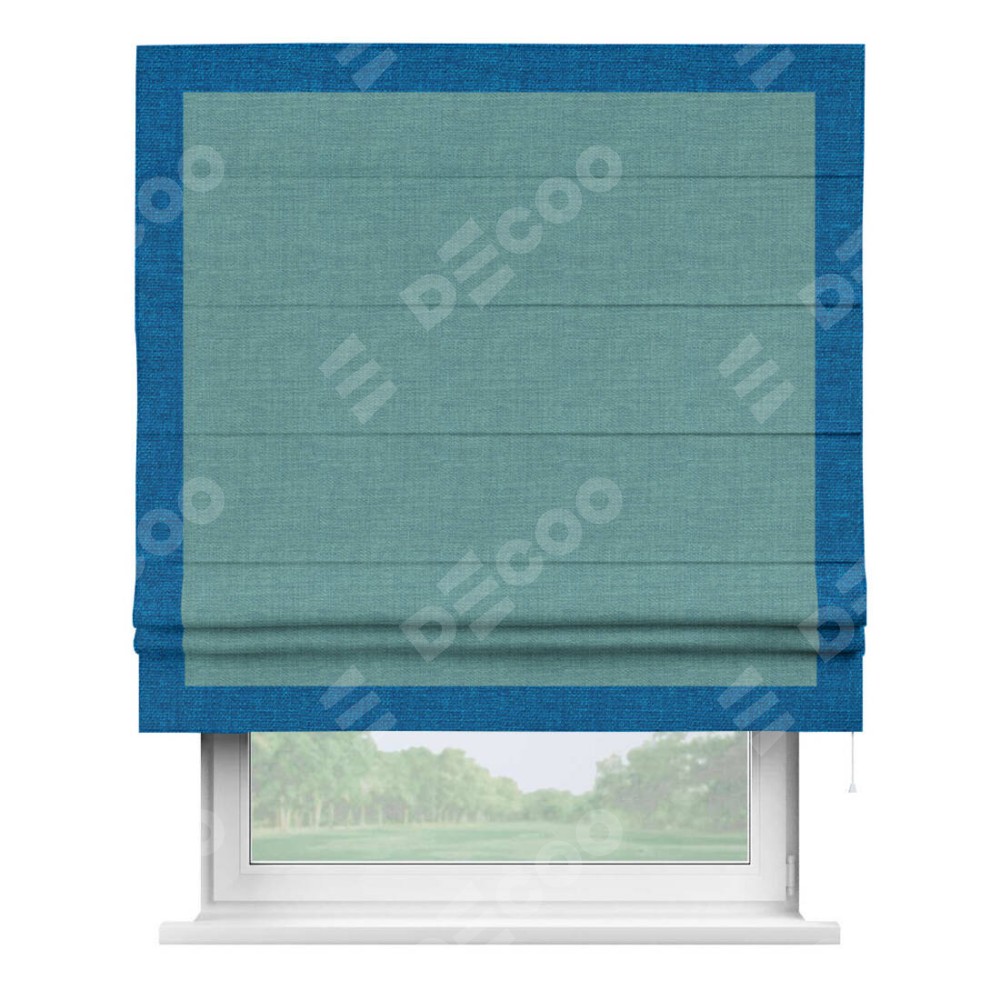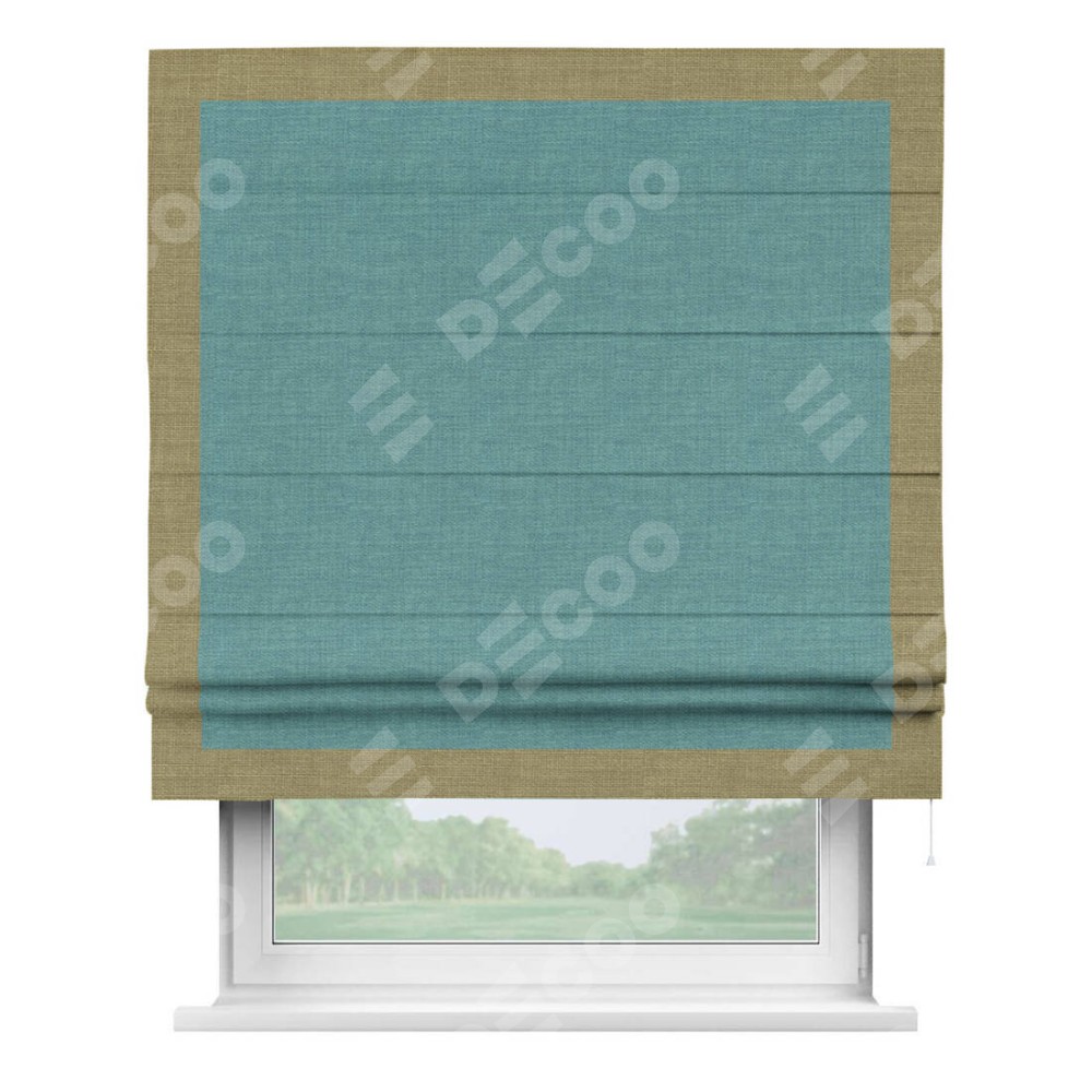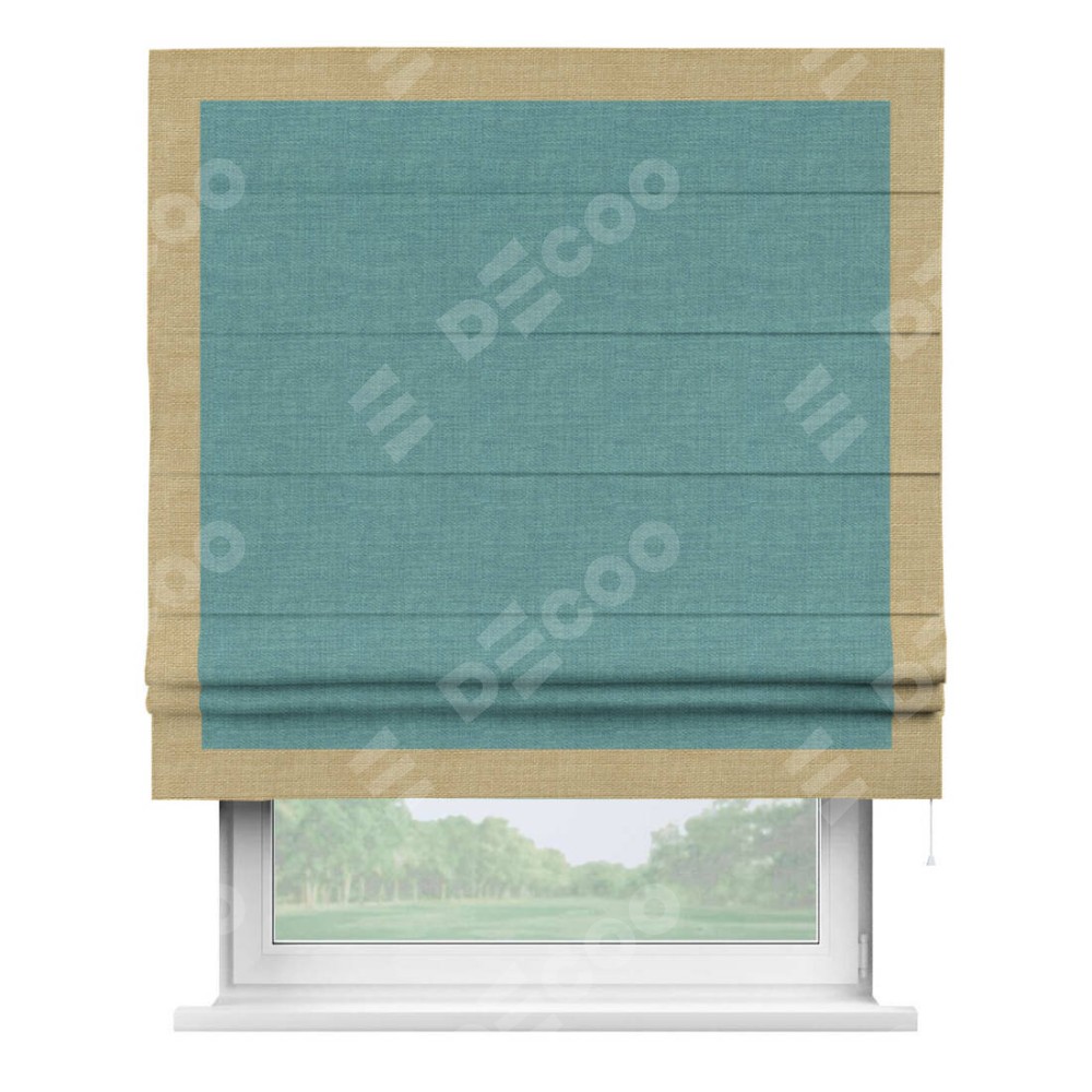 Римская штора «Кортин» с кантом Чесс, для проема, ткань лён бирюза