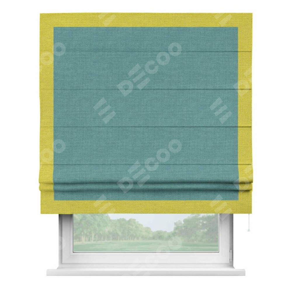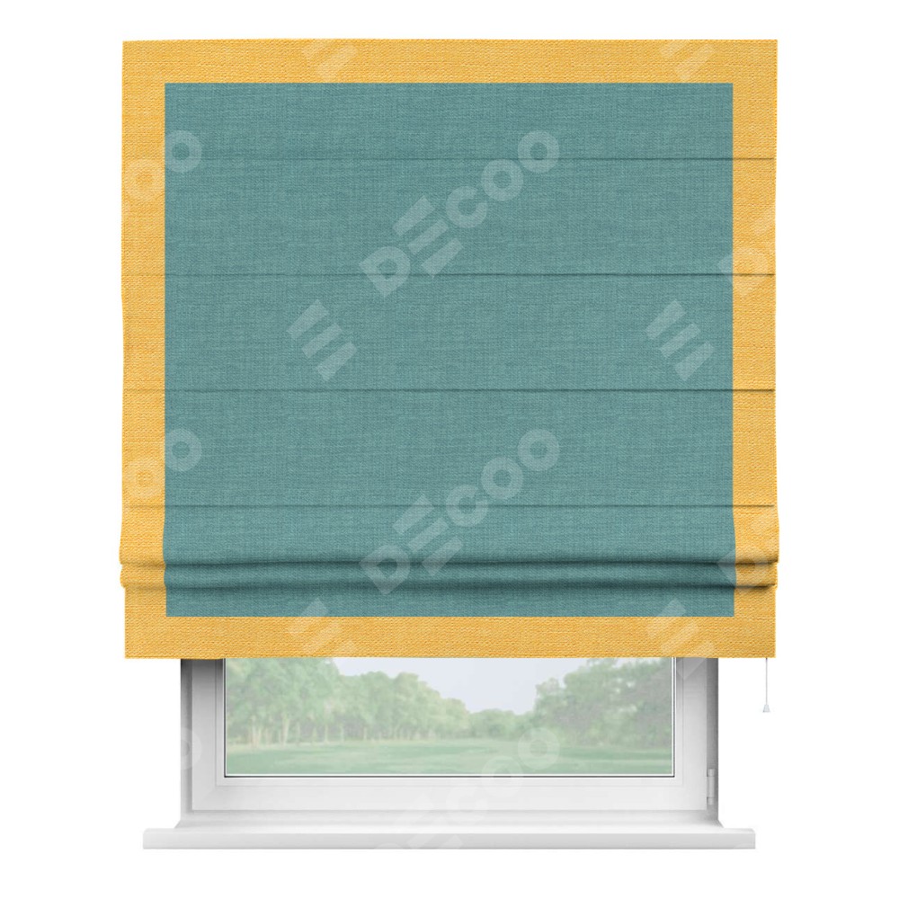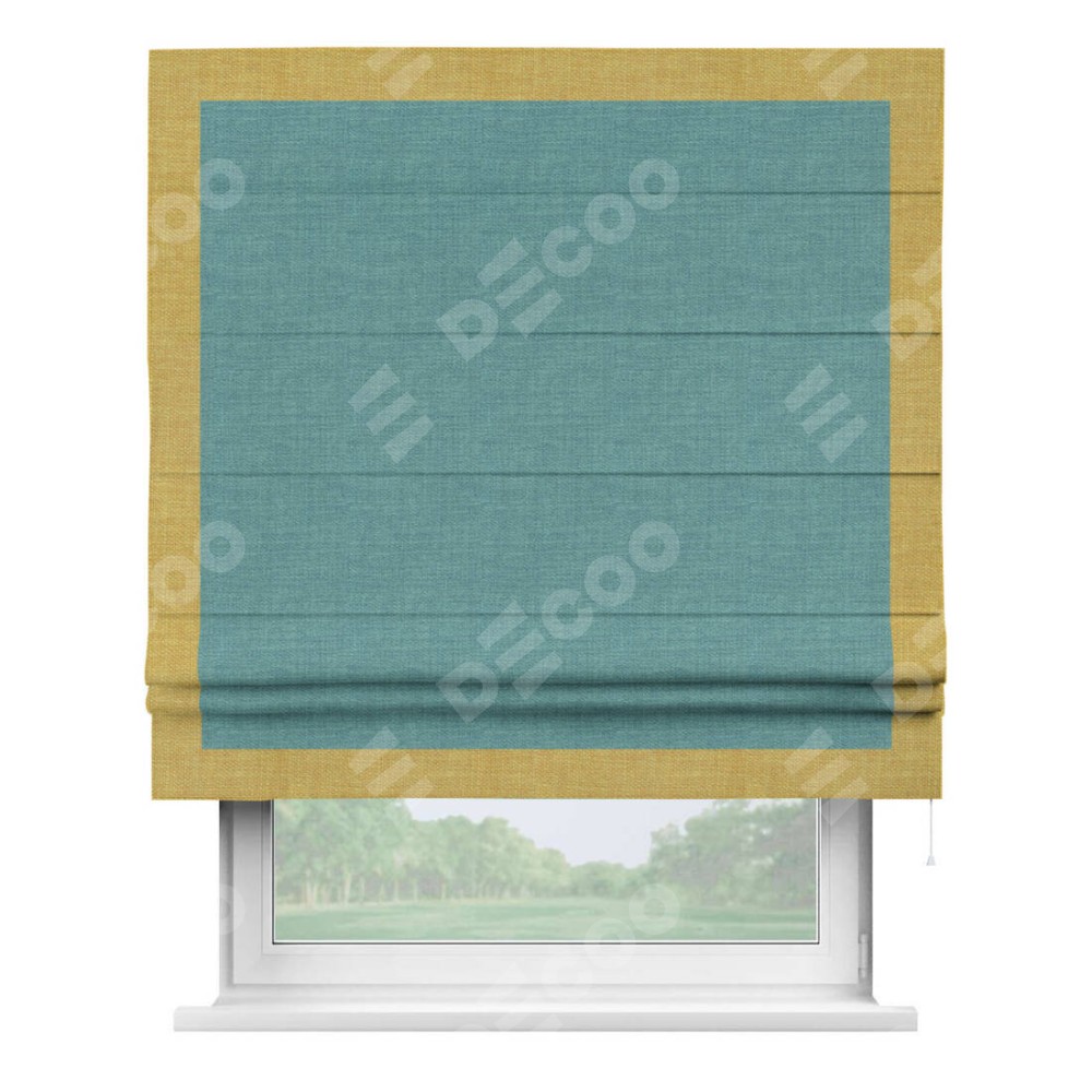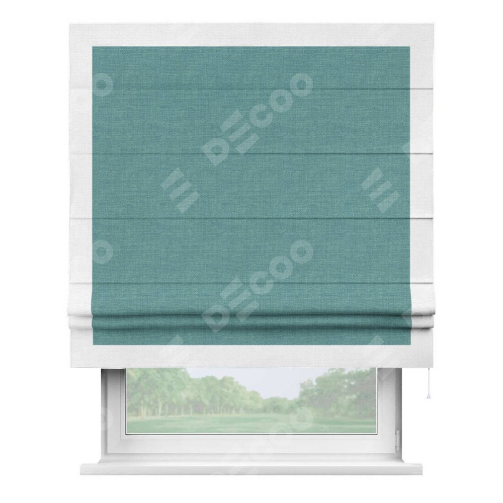 Римская штора «Кортин» с кантом Чесс, для проема, ткань лён бирюза