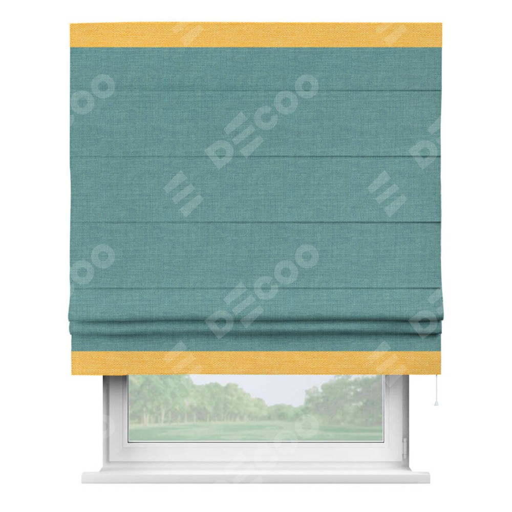 Римская штора «Кортин» с кантом Горизонт, для проема, ткань лён бирюза