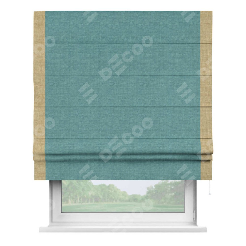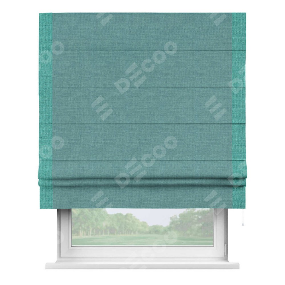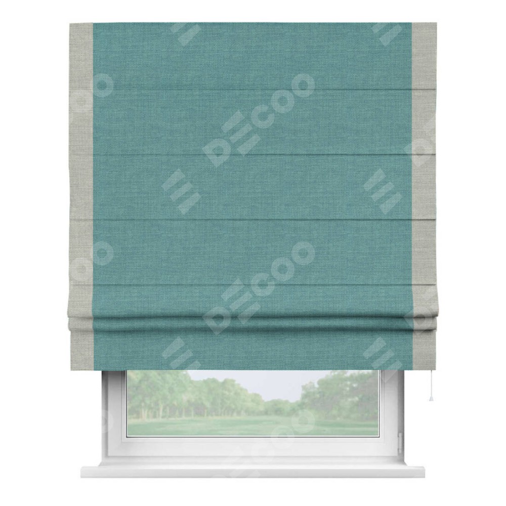 Римская штора «Кортин» с кантом Стрим Дуо, для проема, ткань лён бирюза, ширина 40−60 см