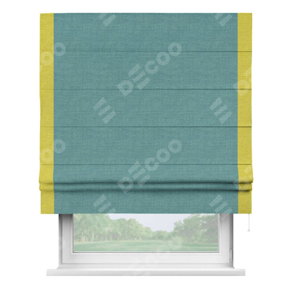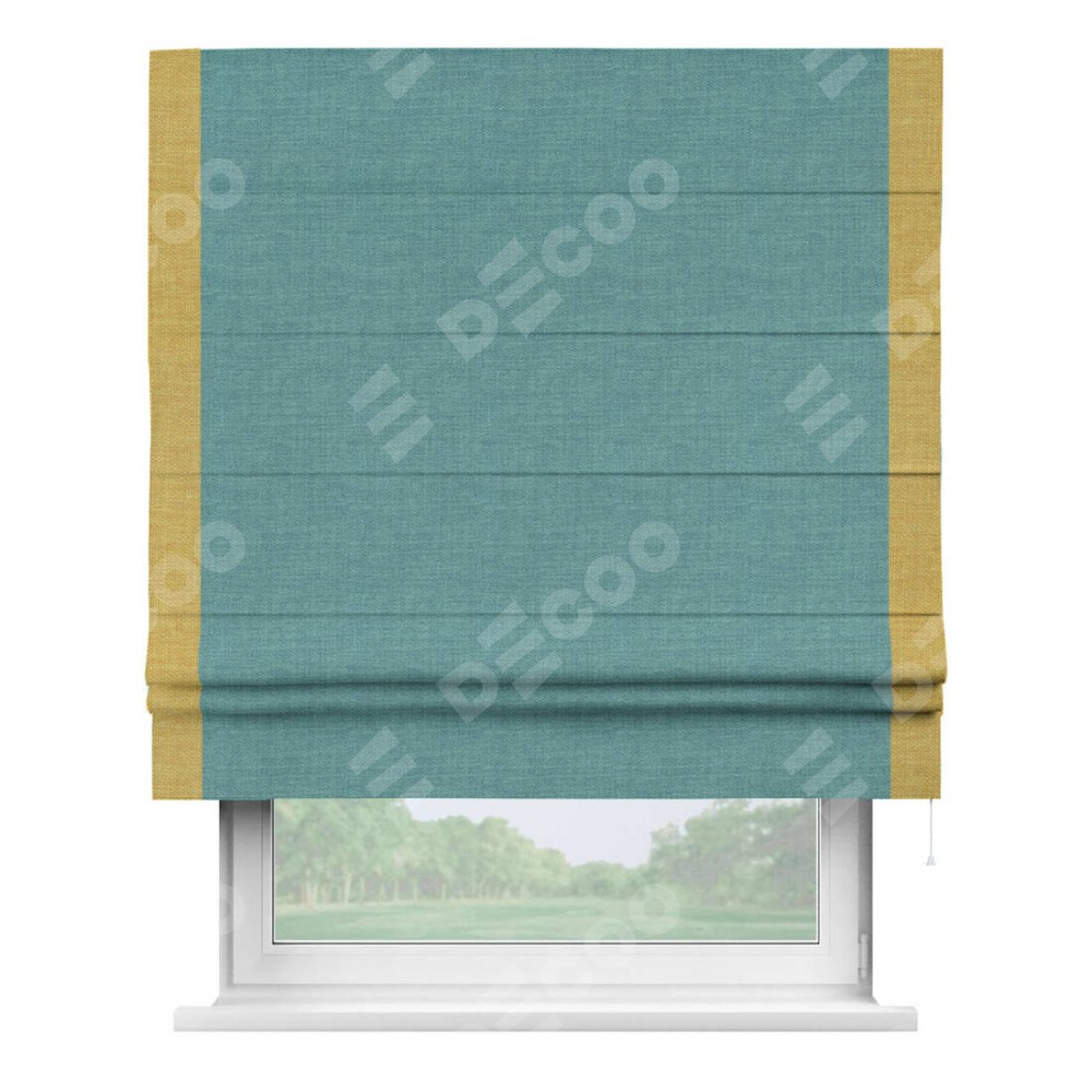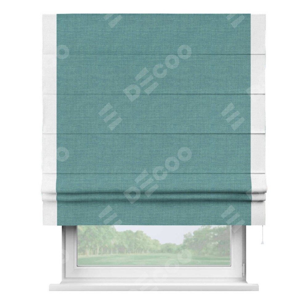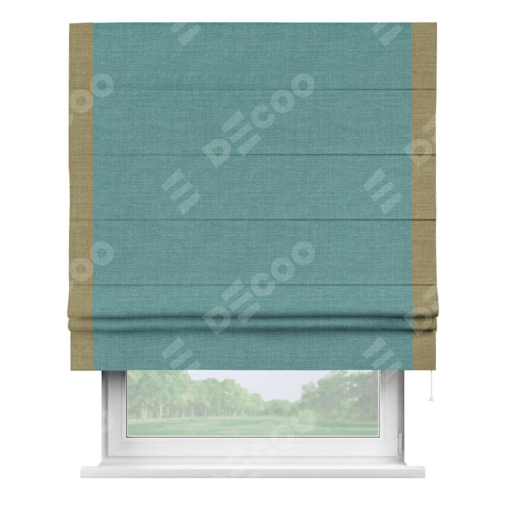 Римская штора «Кортин» с кантом Стрим Дуо, для проема, ткань лён бирюза, ширина 40−60 см