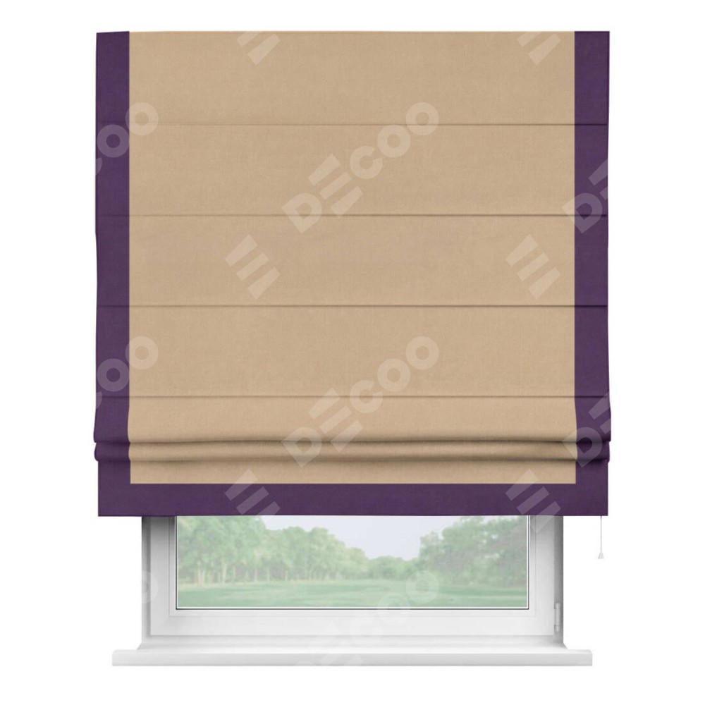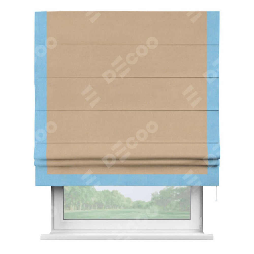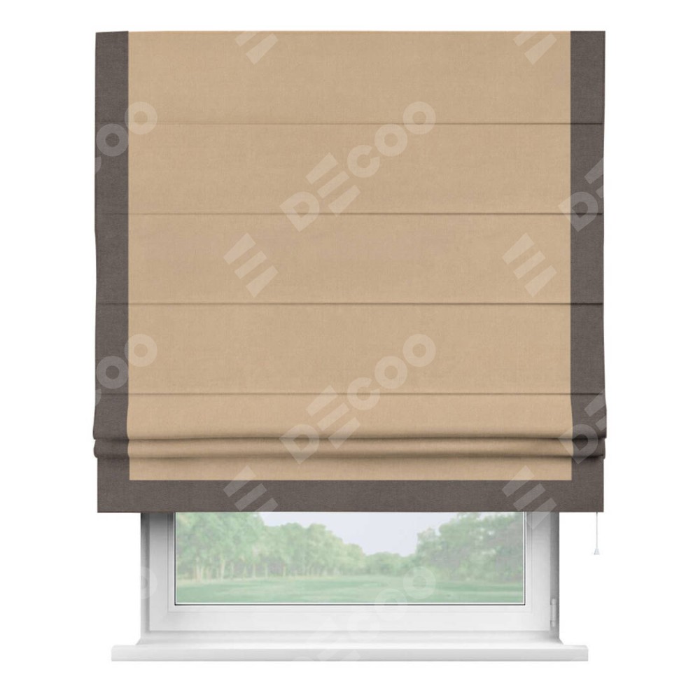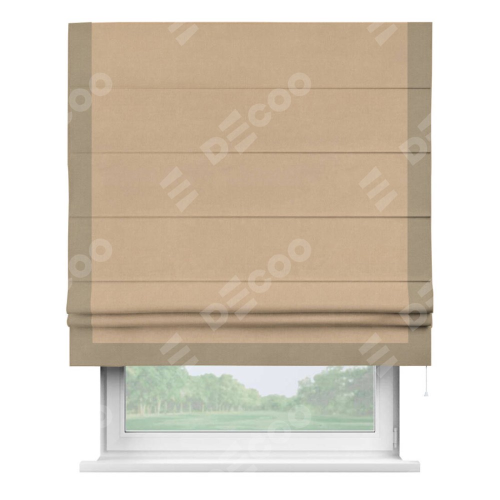 Римская штора «Кортин» с кантом Виктория, для проема, ткань вельвет песочный