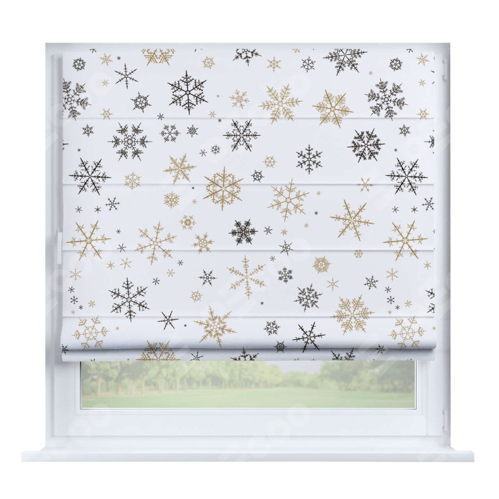 Римская штора производителя «Cortin», устанавливается на створку окна, пошита из ткани блэкаут с нанесением сублимационной печати «Зимняя метель». Штора шьётся по индивидуальным размерам, для данного типа римской шторы возможная ширина от 35 до 150 см., высота до 250 см.