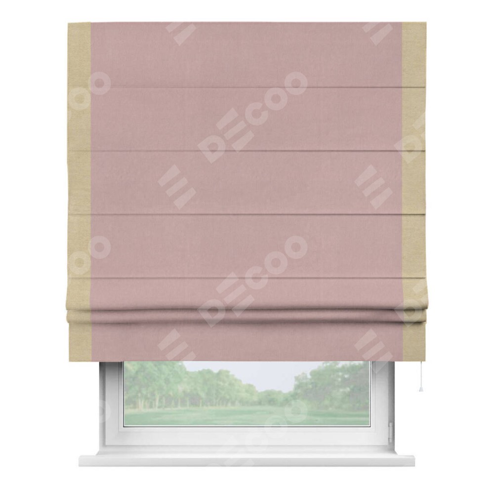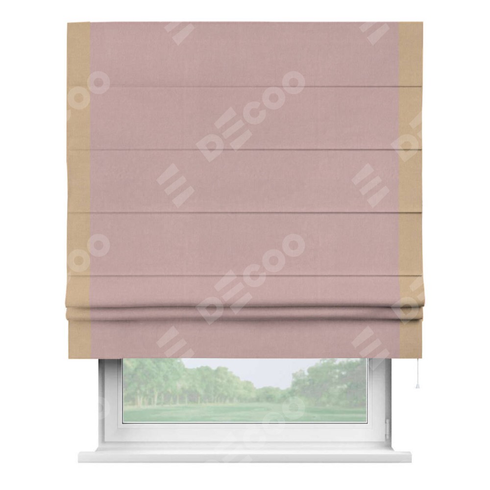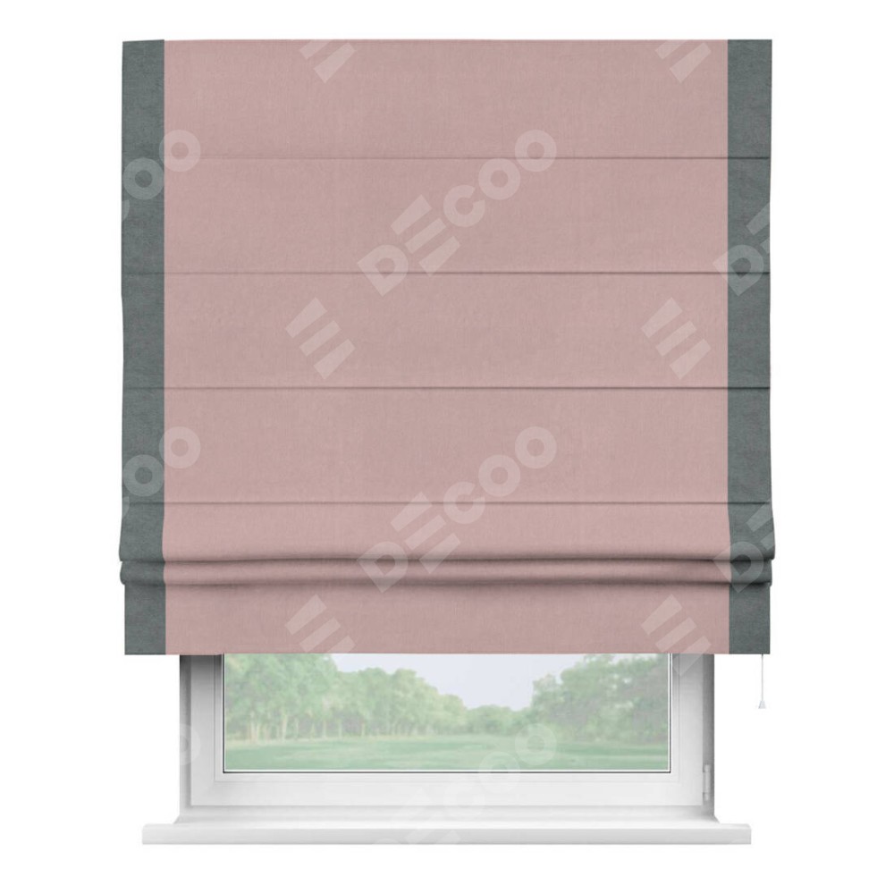 Римская штора «Кортин» с кантом Стрим Дуо, для проема, ткань вельвет розовая пудра