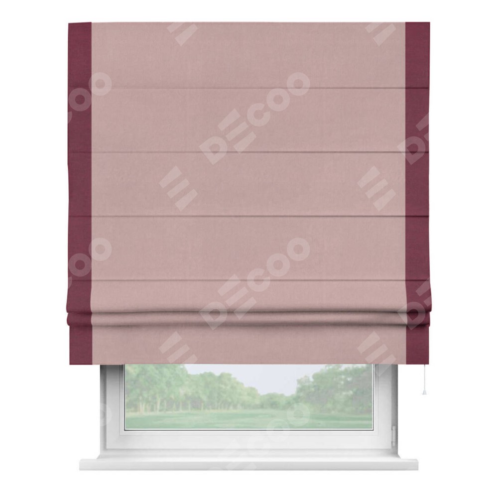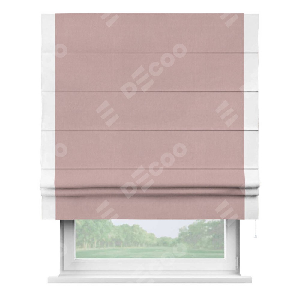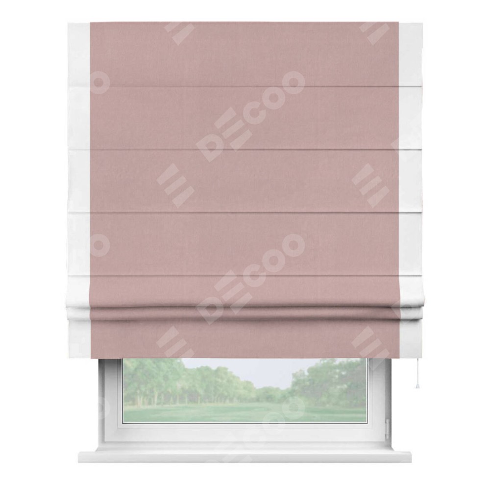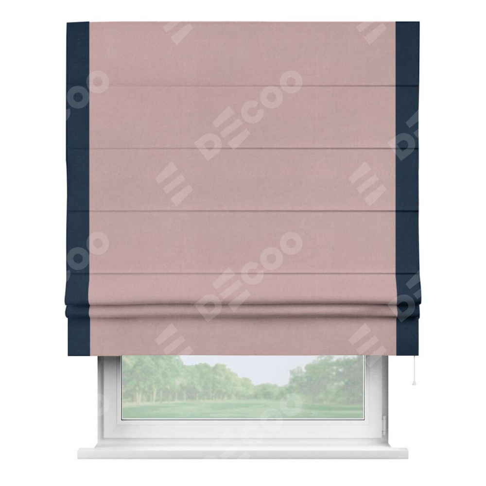 Римская штора «Кортин» с кантом Стрим Дуо, для проема, ткань вельвет розовая пудра