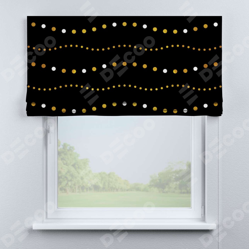 Римская штора производителя «Cortin», используется для проёма, пошита из ткани блэкаут с нанесением сублимационной печати «Яркие огоньки». Имеет универсальный механизм и подходит для монтажа: на потолок, на стену и в нишу.