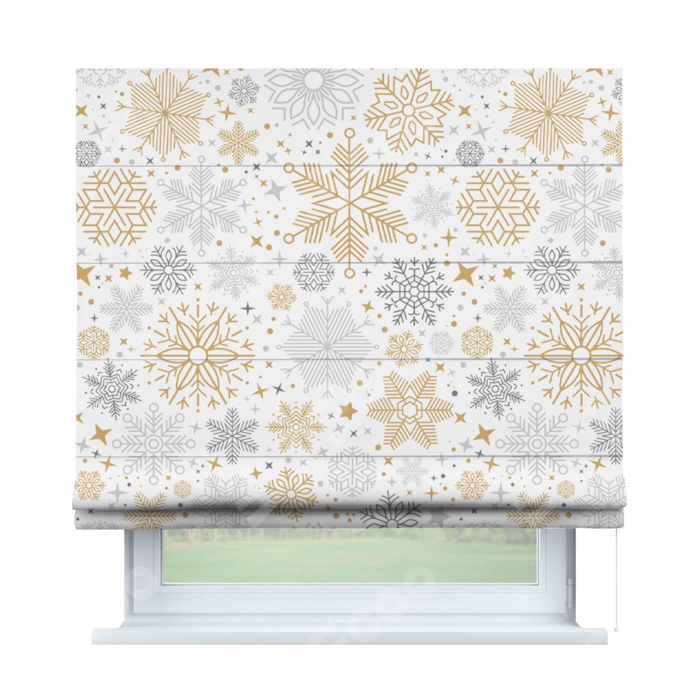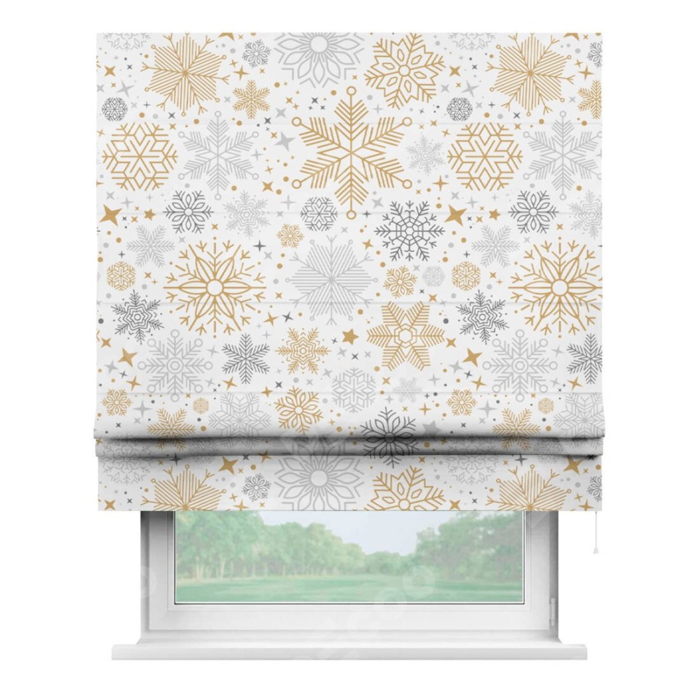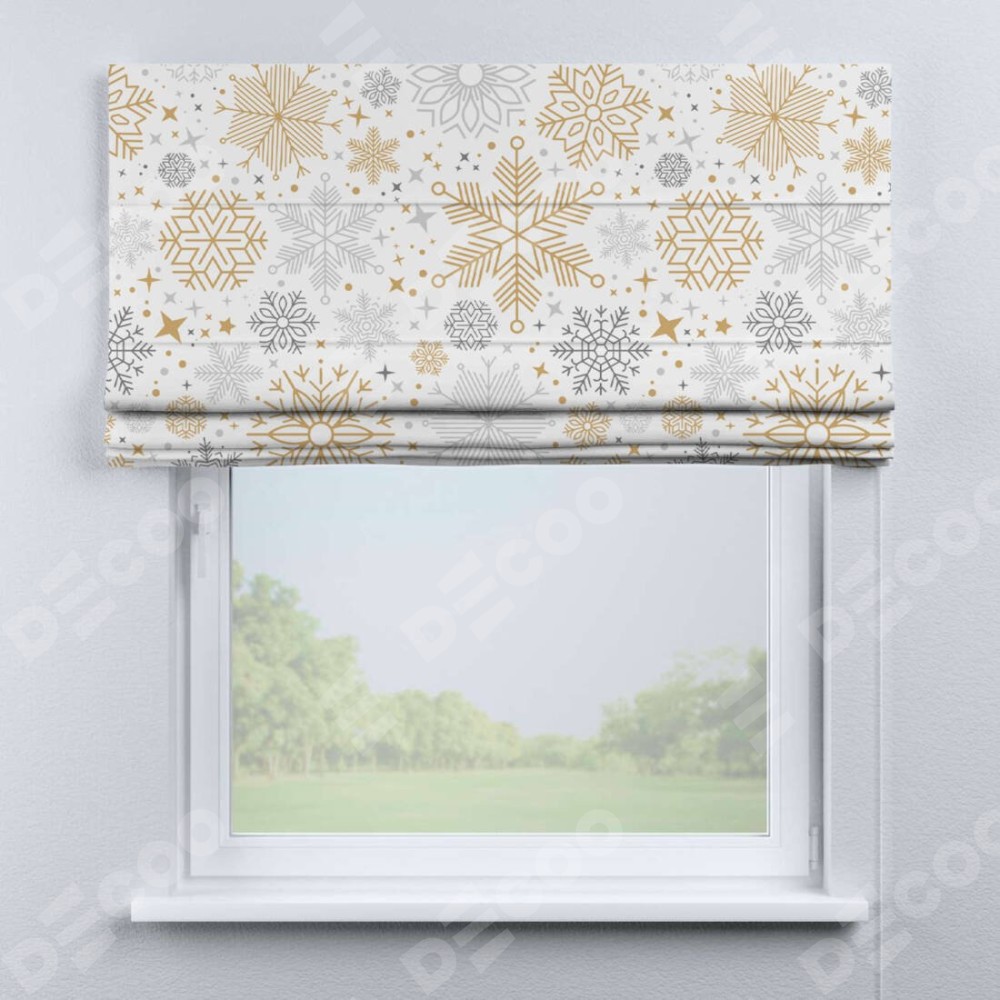 Римская штора производителя «Cortin», используется для проёма, пошита из ткани блэкаут с нанесением сублимационной печати «Снежное очарование». Имеет универсальный механизм и подходит для монтажа: на потолок, на стену и в нишу.