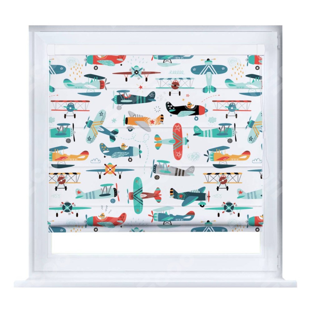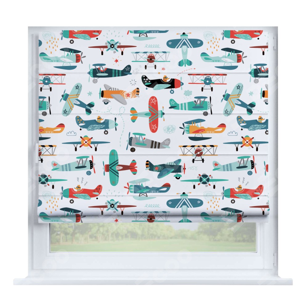 Римская штора «Кортин» на створку «Самолёты и пилоты»