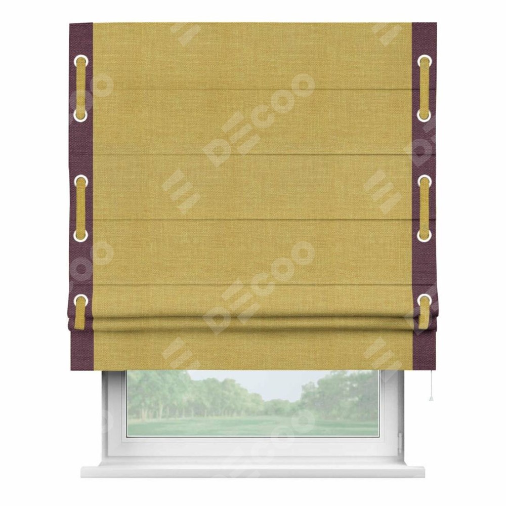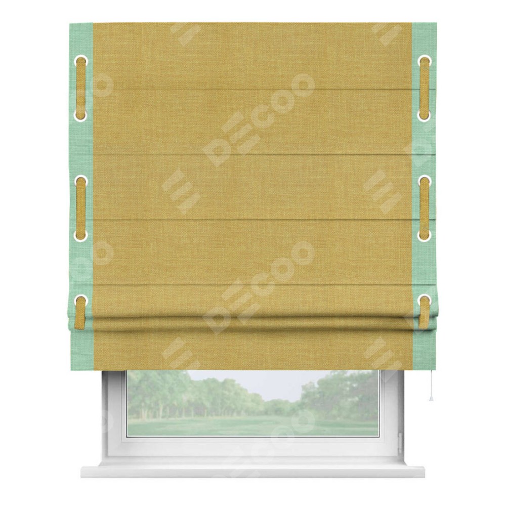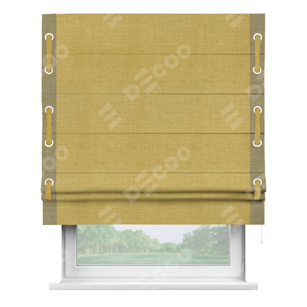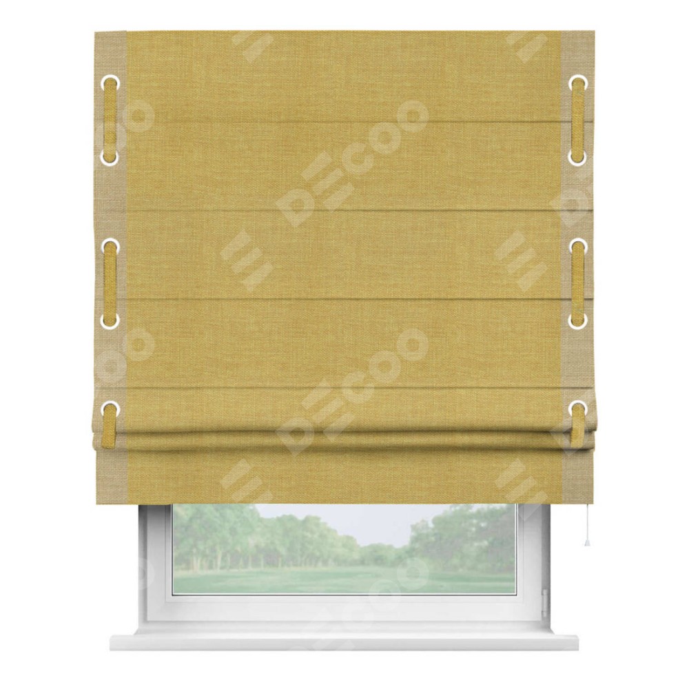 Римская штора «Кортин» с кантом Стрим Дуо (люверсы с пояском), для проема, ткань лён горчичный