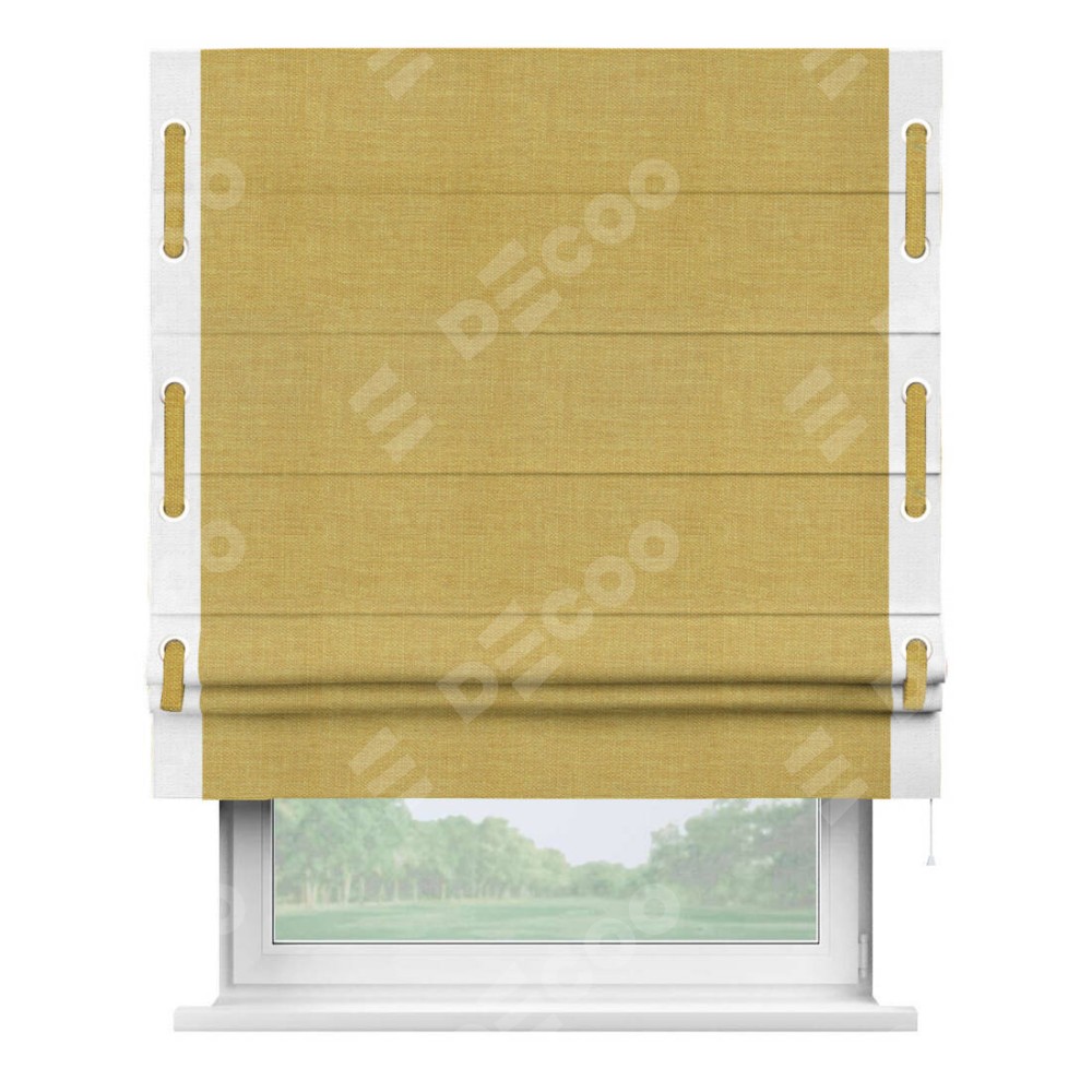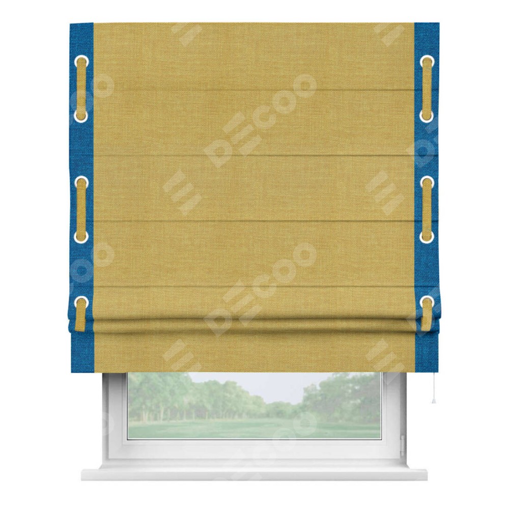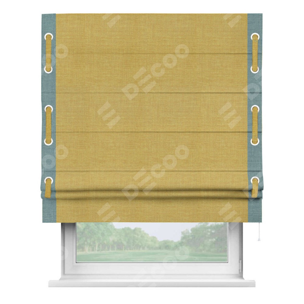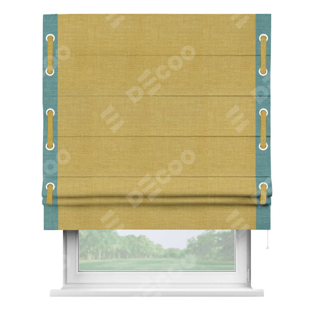 Римская штора «Кортин» с кантом Стрим Дуо (люверсы с пояском), для проема, ткань лён горчичный