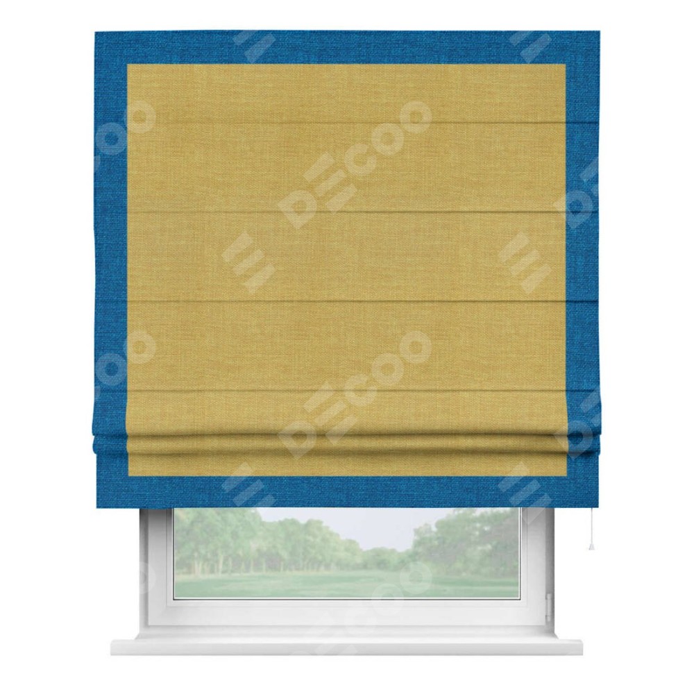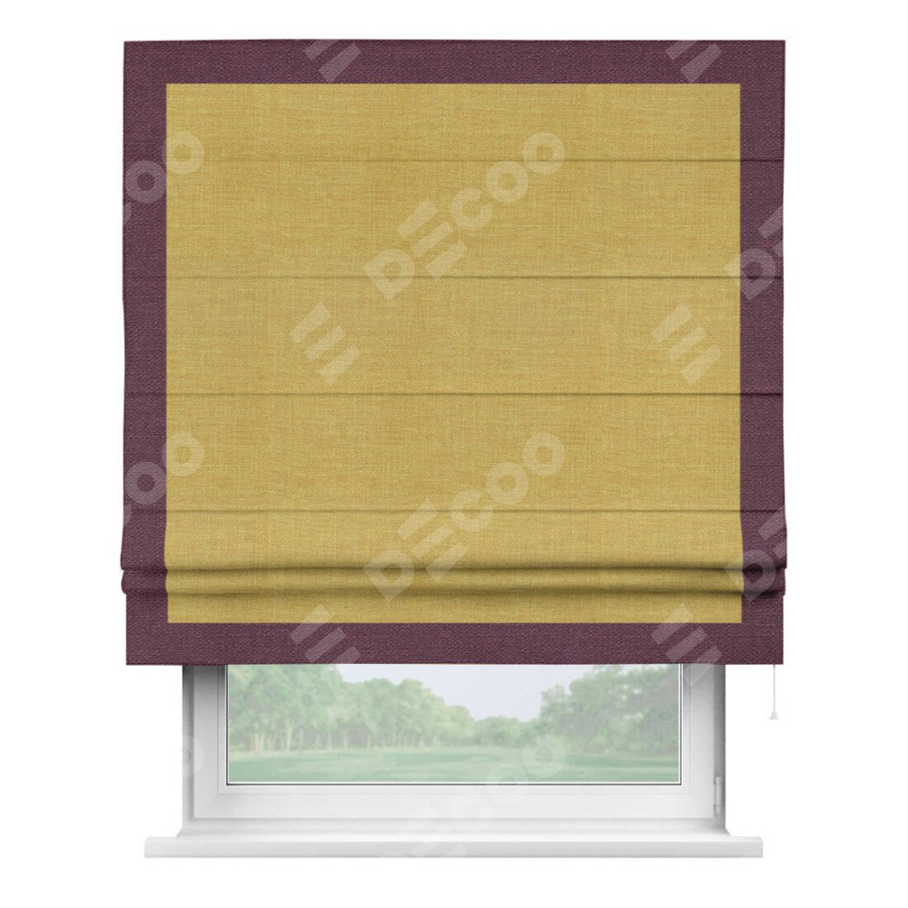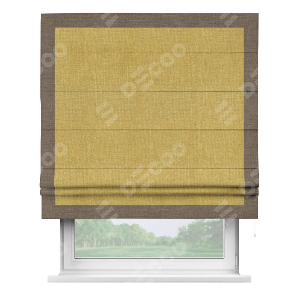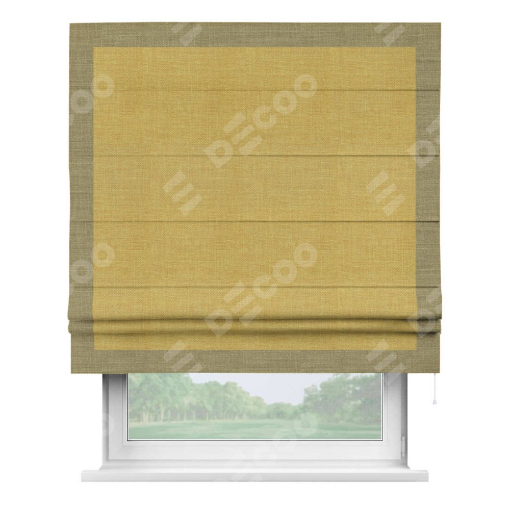 Римская штора «Кортин» с кантом Чесс, для проема, ткань лён горчичный