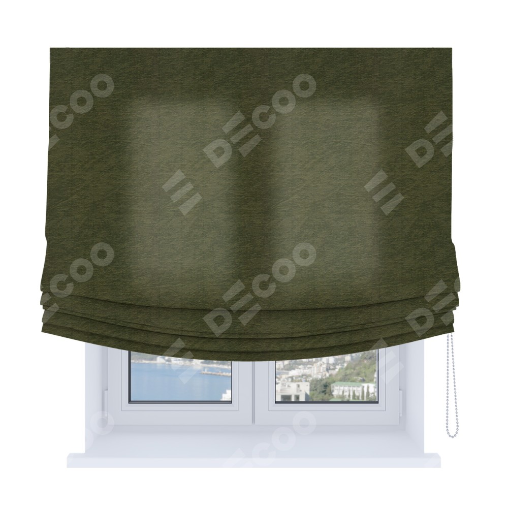 Римская штора Soft производителя «Cortin», используется для проёма, пошита из ткани софт однотонный зелёный, артикул ткани 33110. Имеет универсальный механизм и подходит для монтажа: на потолок, на стену и в нишу. В отличие от стандартных римских штор, римская штора Soft не имеет горизонтальных вставок и нижнего отвеса. Это позволяет ткани произвольно драпироваться в свободные мягкие складки.