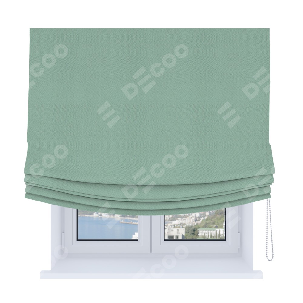 Римская штора Soft производителя «Cortin», используется для проёма, пошита из ткани блэкаут однотонный ментоловый, артикул ткани 29584. Имеет универсальный механизм и подходит для монтажа: на потолок, на стену и в нишу. В отличие от стандартных римских штор, римская штора Soft не имеет горизонтальных вставок и нижнего отвеса. Это позволяет ткани произвольно драпироваться в свободные мягкие складки.