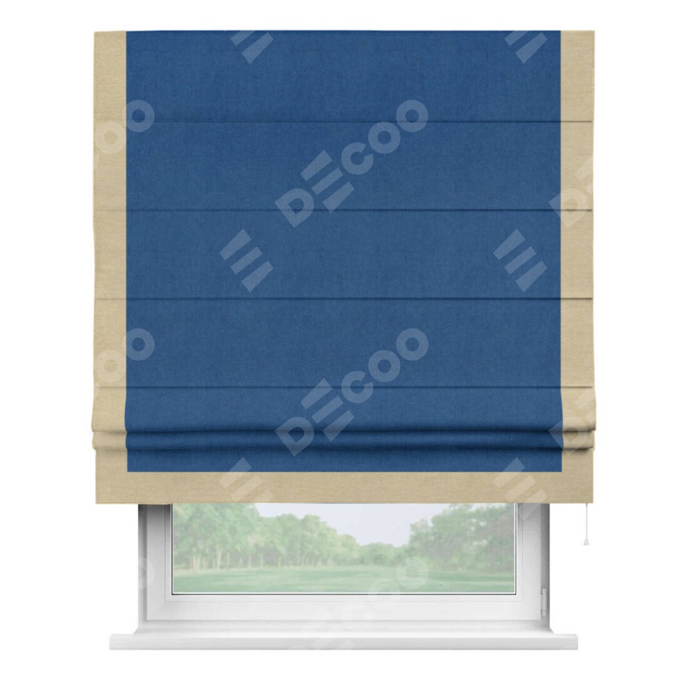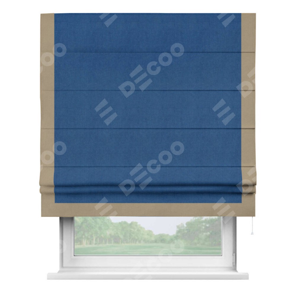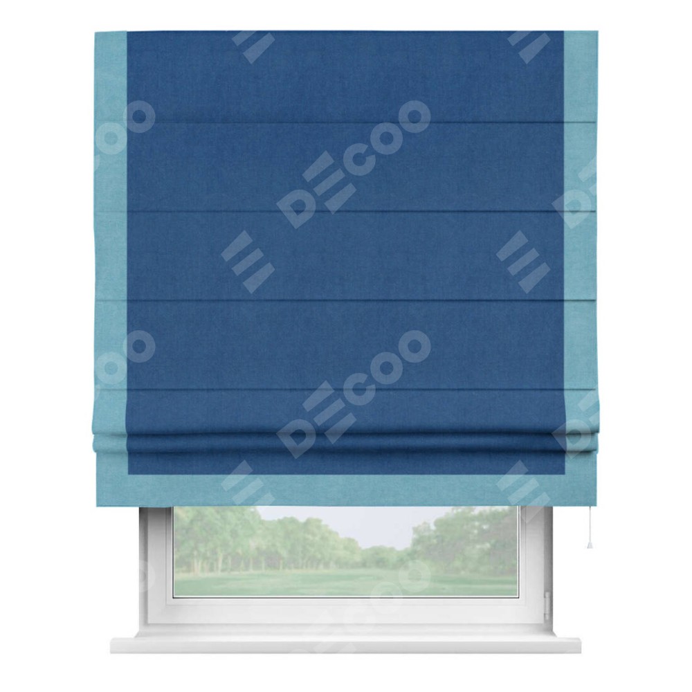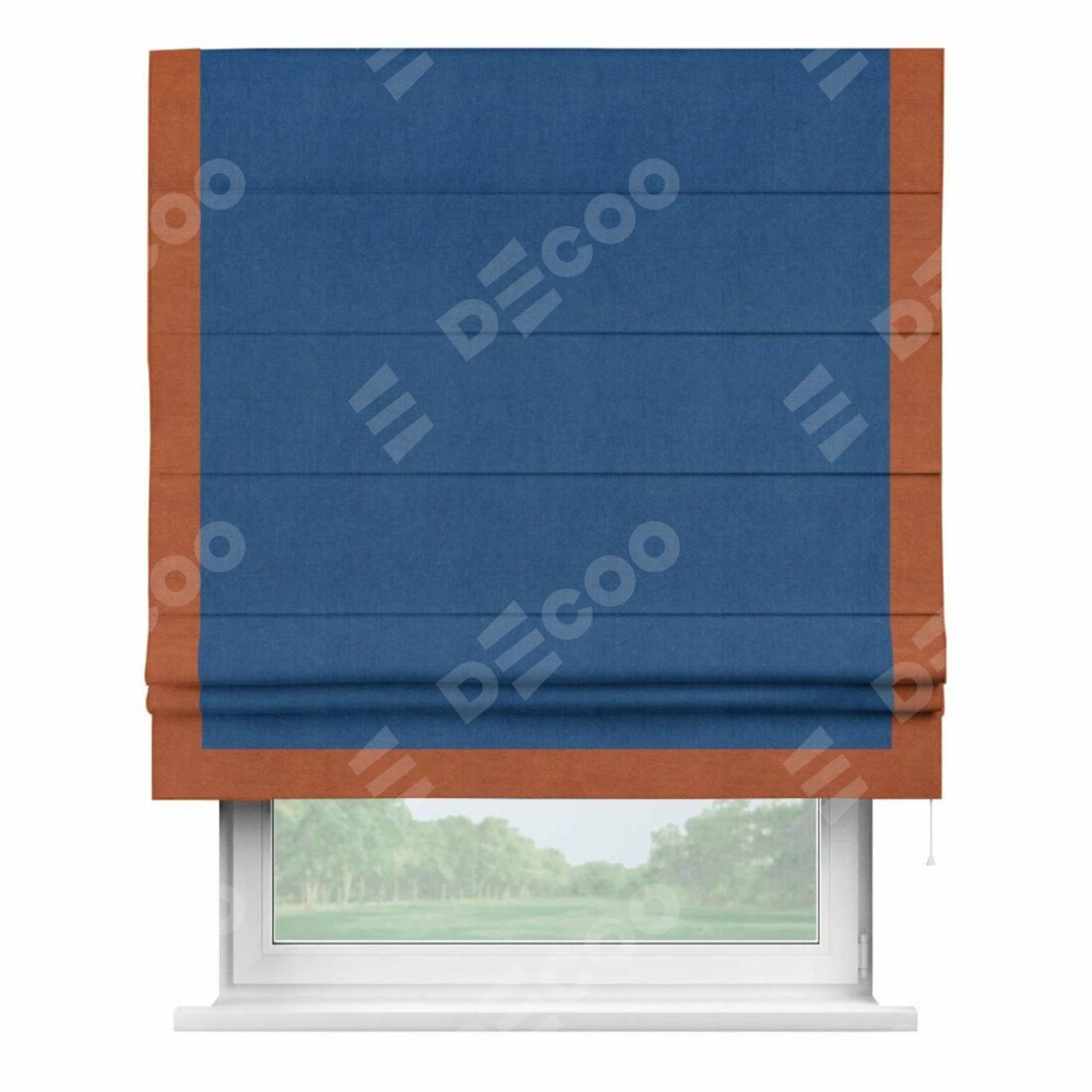 Римская штора «Кортин» с кантом Виктория, для проема, ткань вельвет синий