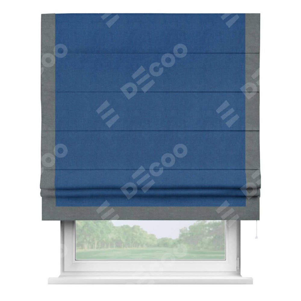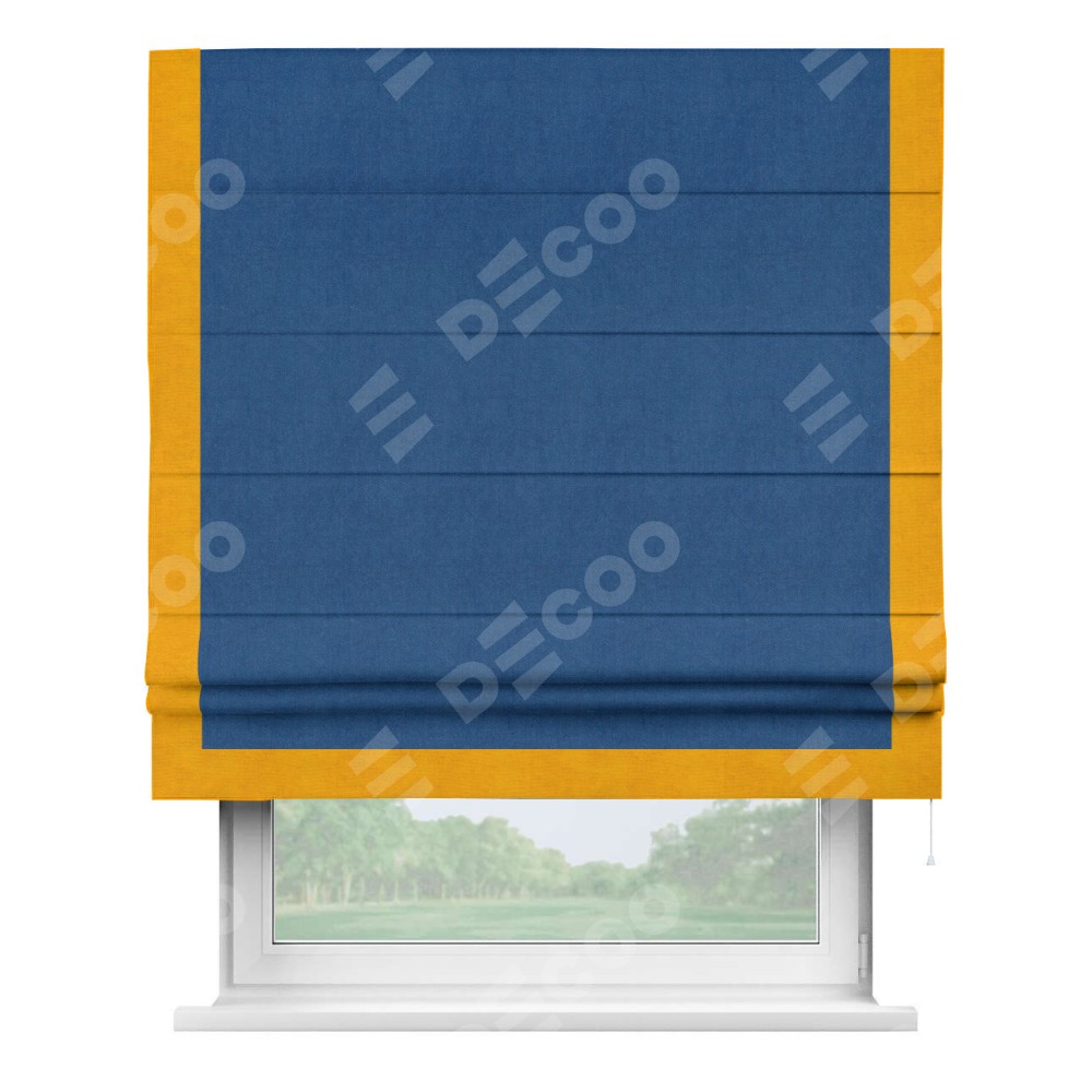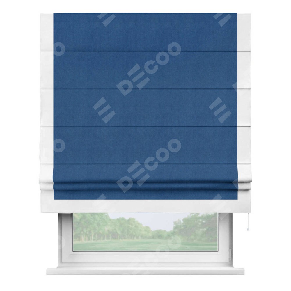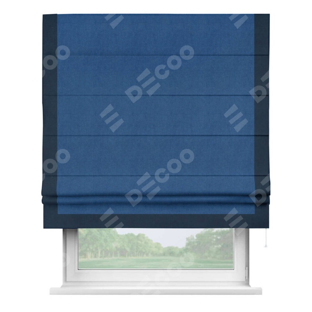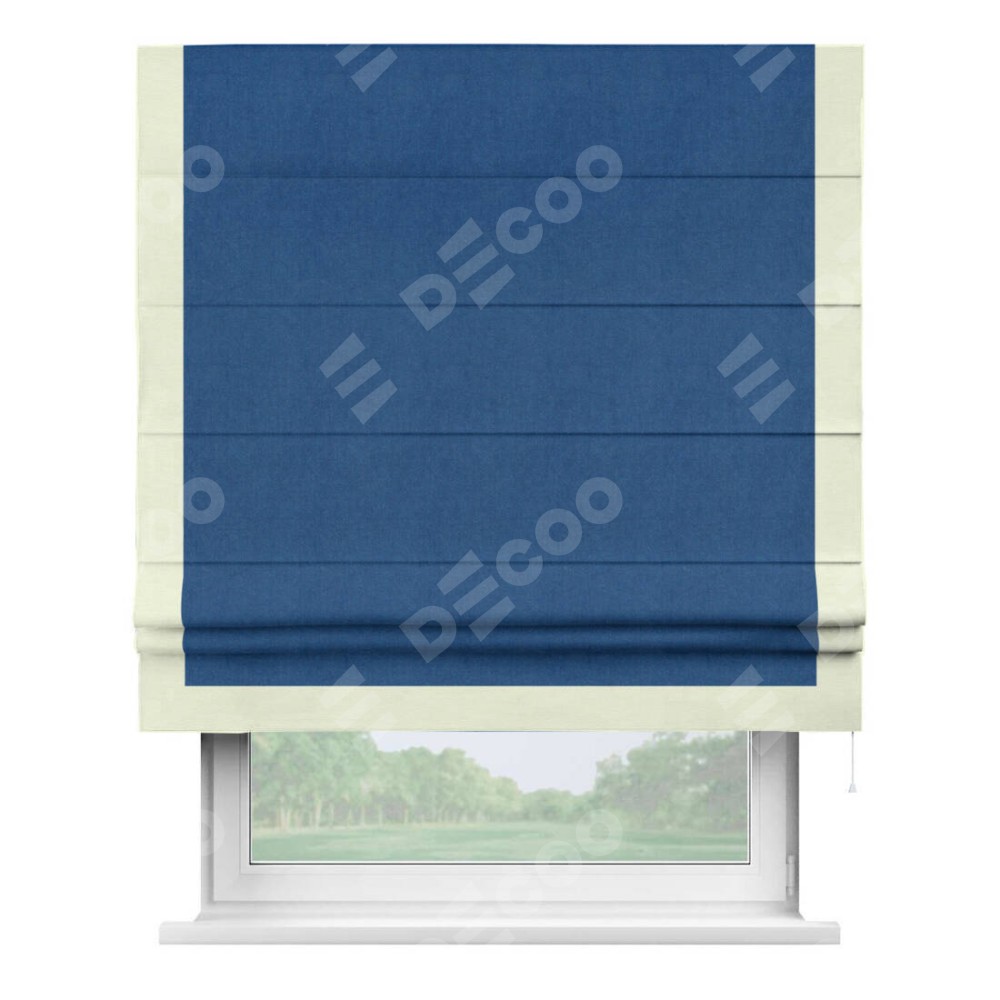 Римская штора «Кортин» с кантом Виктория, для проема, ткань вельвет синий