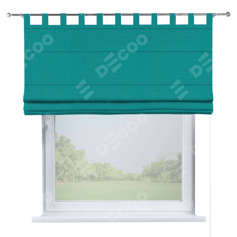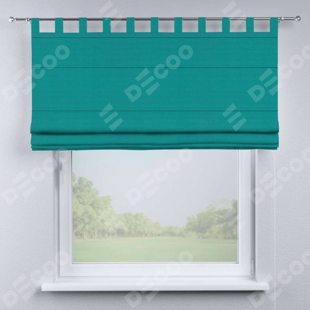 Римская штора производителя «Cortin», используется для проёма, пошита из ткани блэкаут однотонный бирюзовый, артикул ткани 88297. Данная модель пошита на петлях, комплектуется на выбор круглым карнизом и подходит для монтажа на стену. Римская штора на петлях имеет простую систему регулировки высоты, отличительным преимуществом данной модели является простой способ монтажа. Достаточно повесить ее на трубу и штора готова!