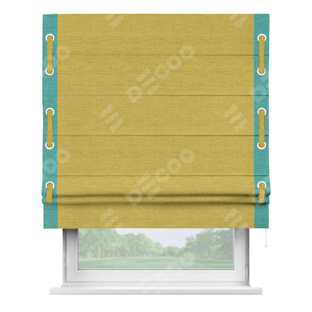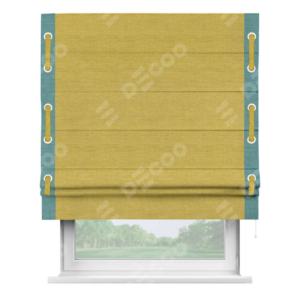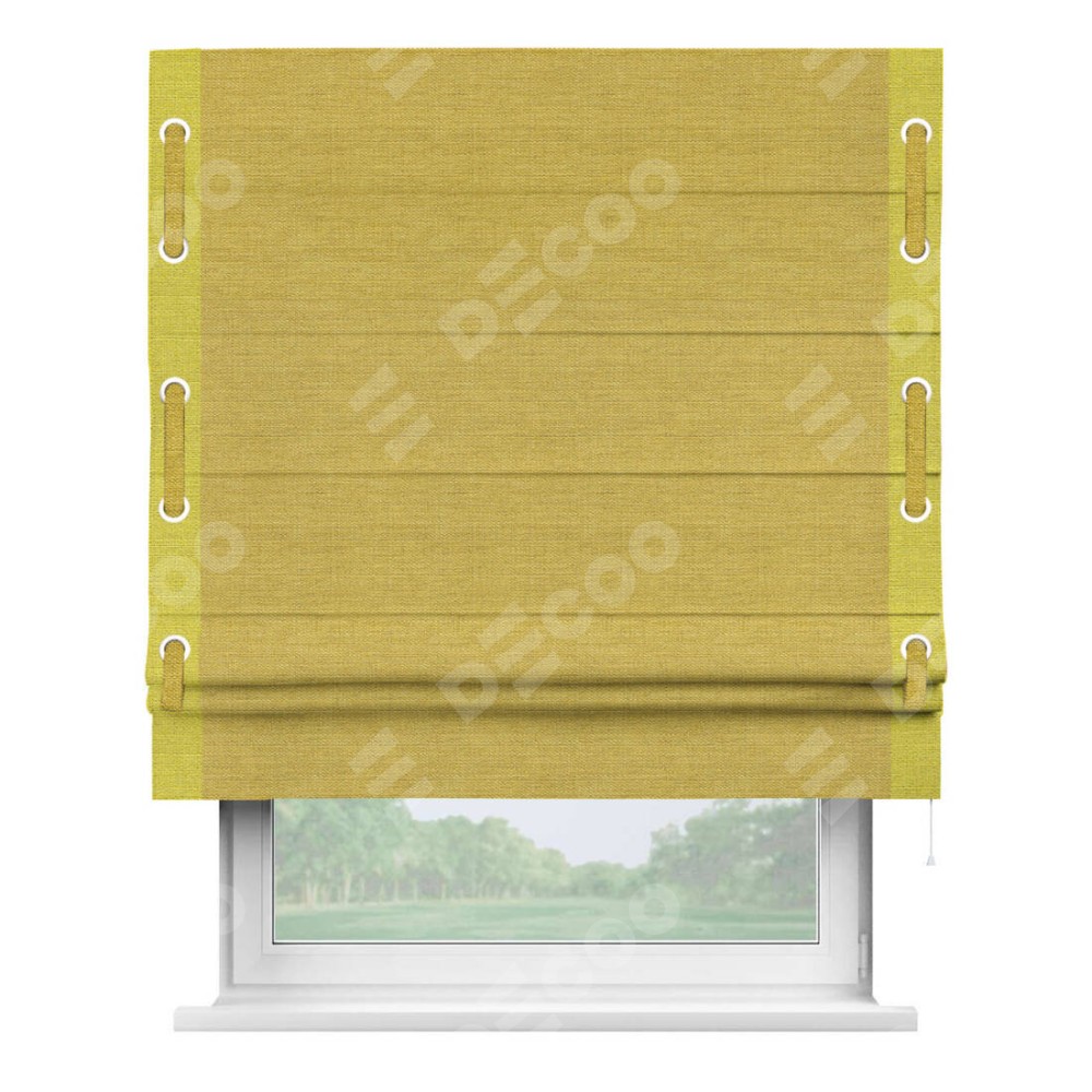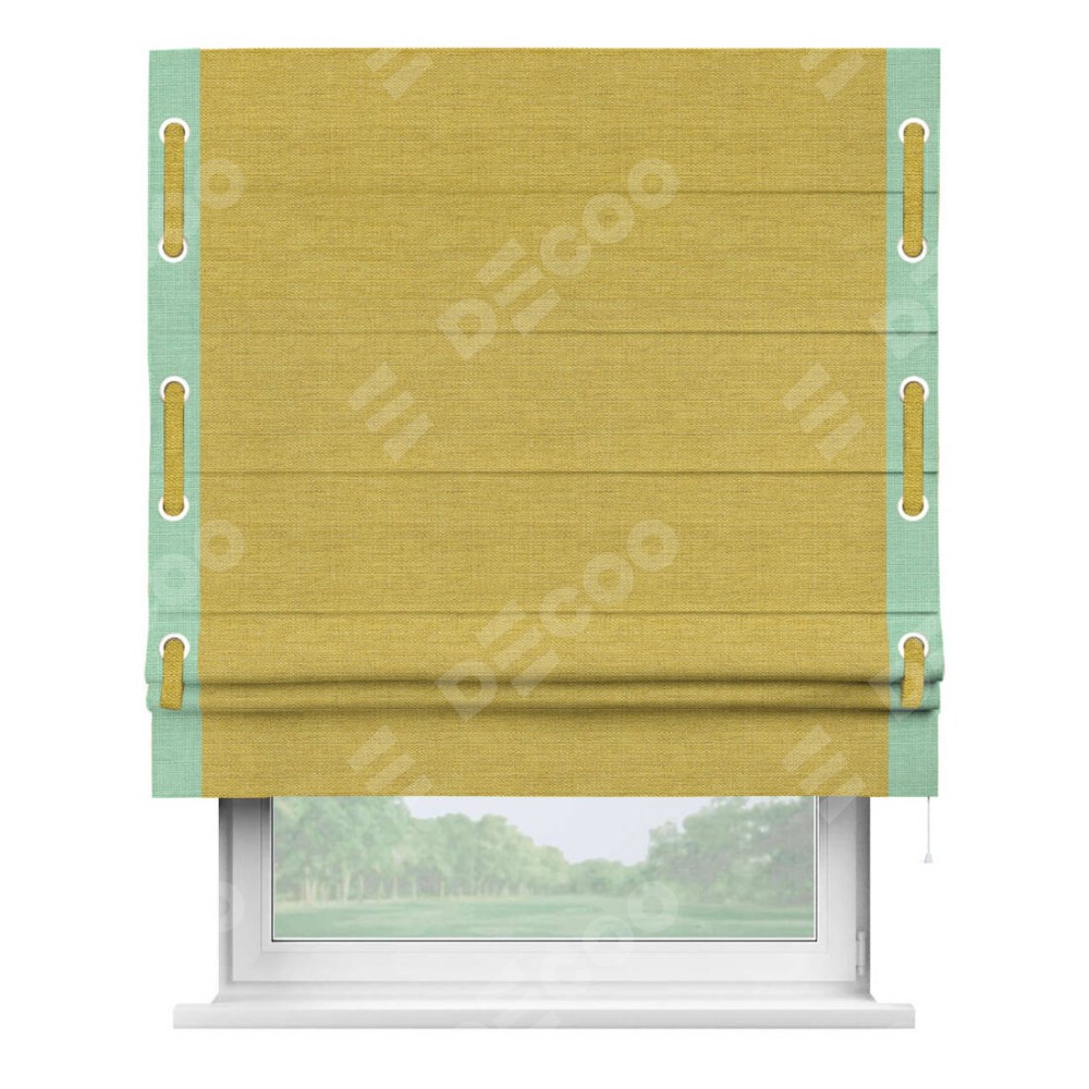 Римская штора «Кортин» с кантом Стрим Дуо (люверсы с пояском), для проема, ткань лён светло-салатовый