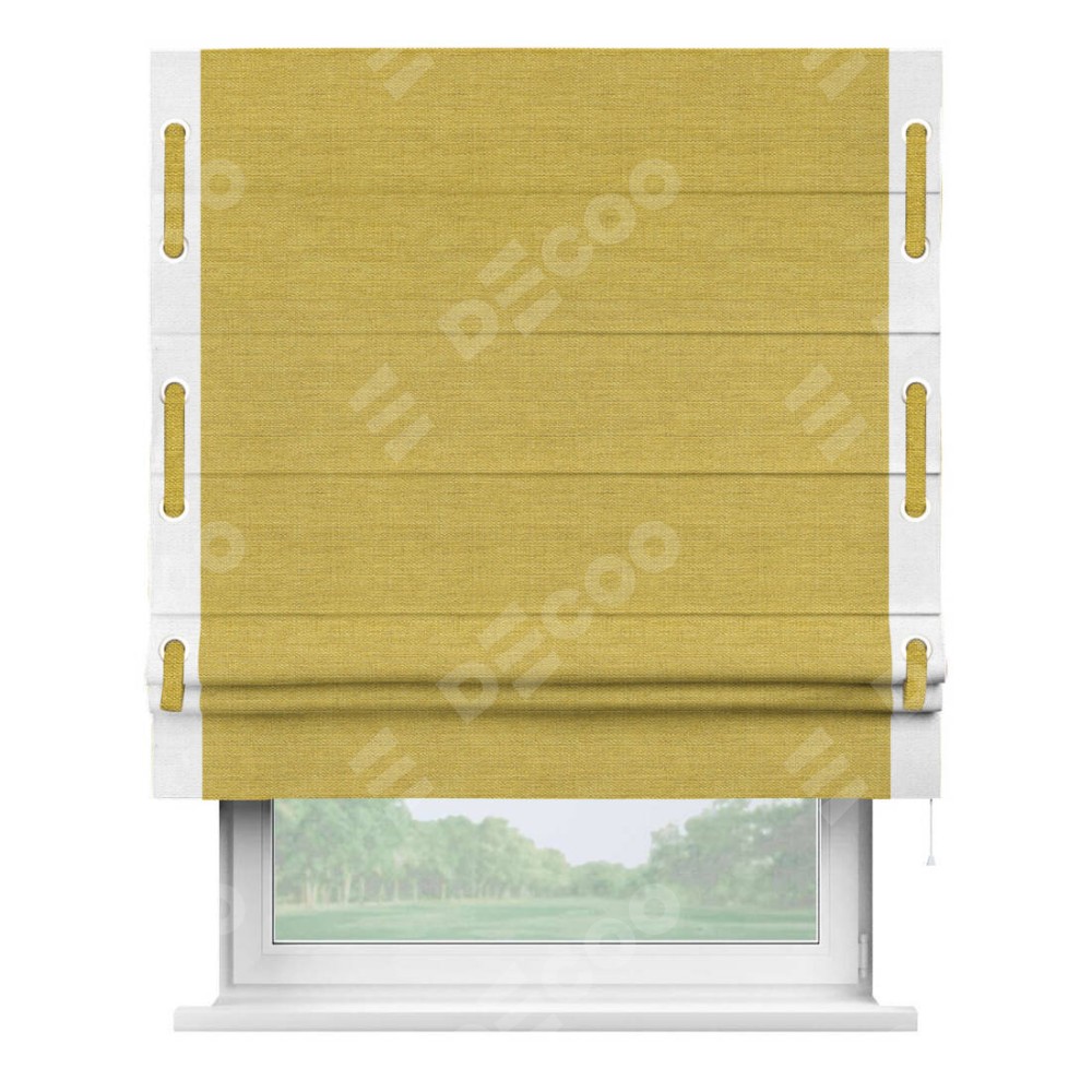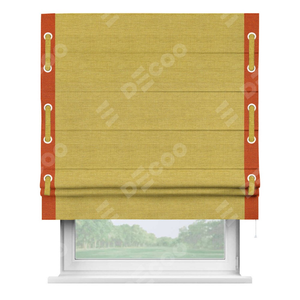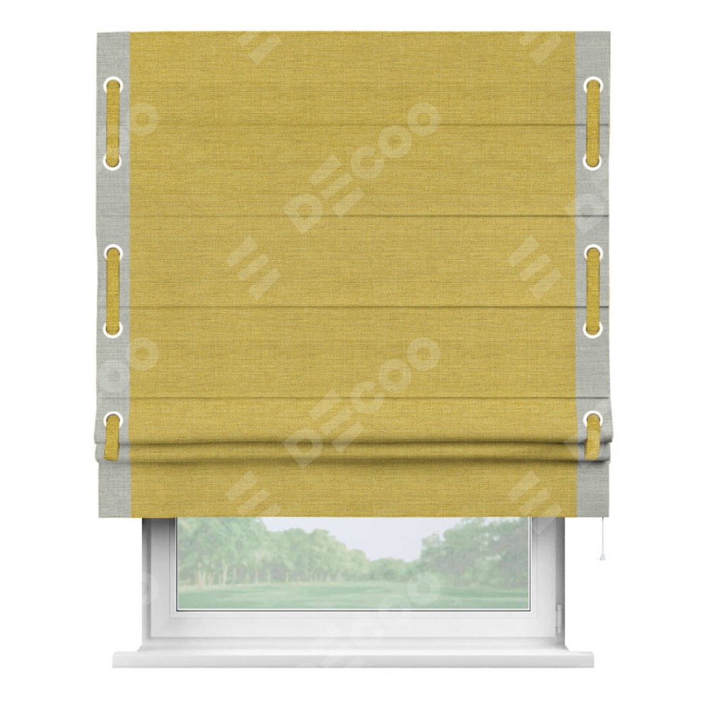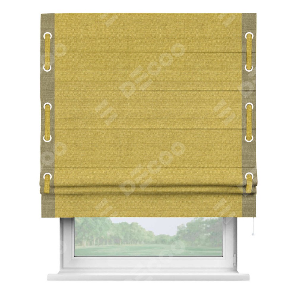 Римская штора «Кортин» с кантом Стрим Дуо (люверсы с пояском), для проема, ткань лён светло-салатовый