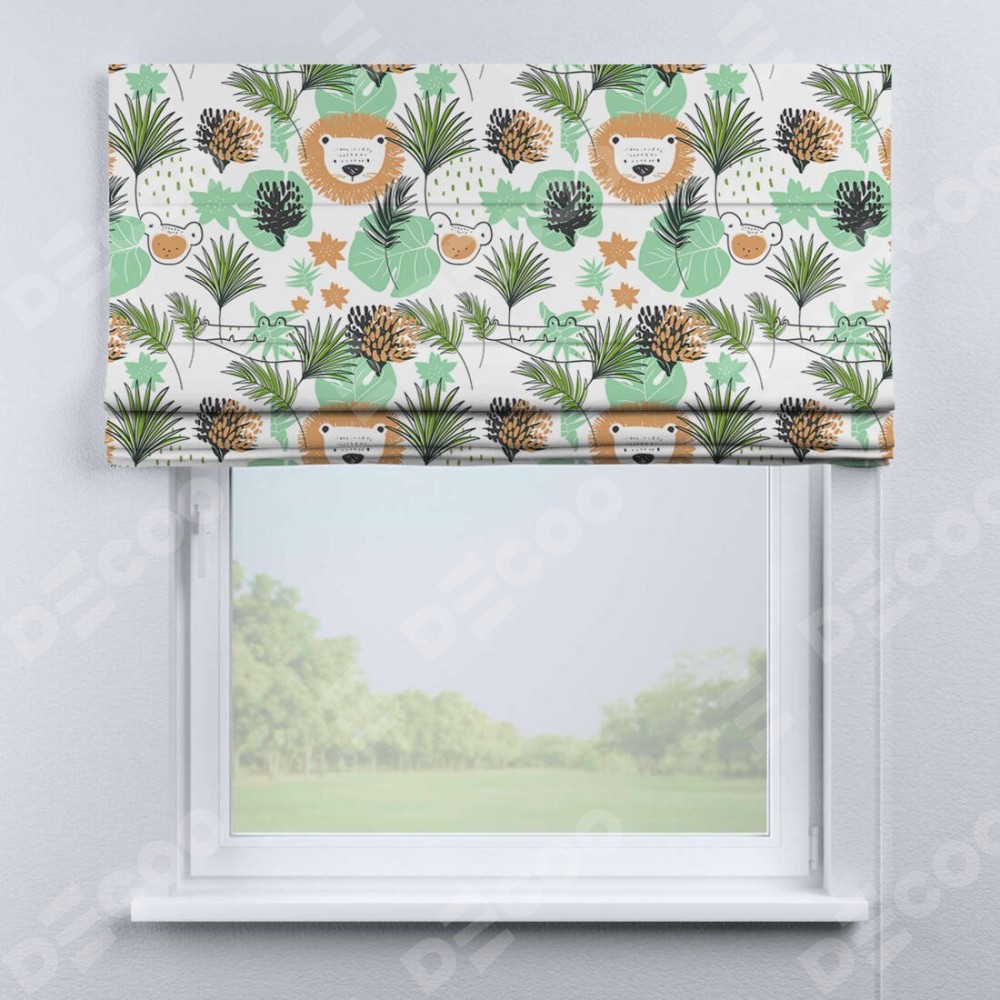 Римская штора «Кортин» для проема «Животные из джунглей» отлично подойдёт для интерьера: в детскую.