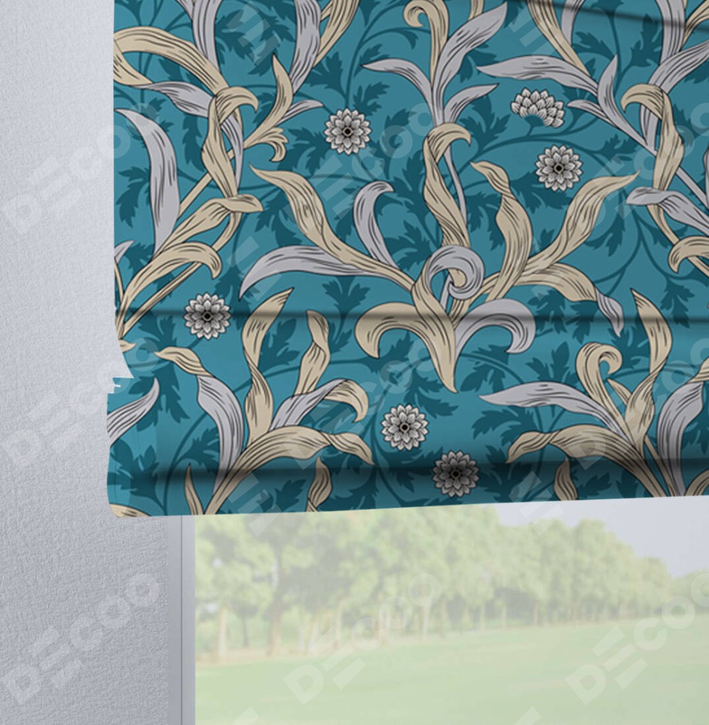 Римская штора «Кортин» на петлях «Винтажные листья» отлично подойдёт для интерьера: на балкон, в гостиную и в кухню.