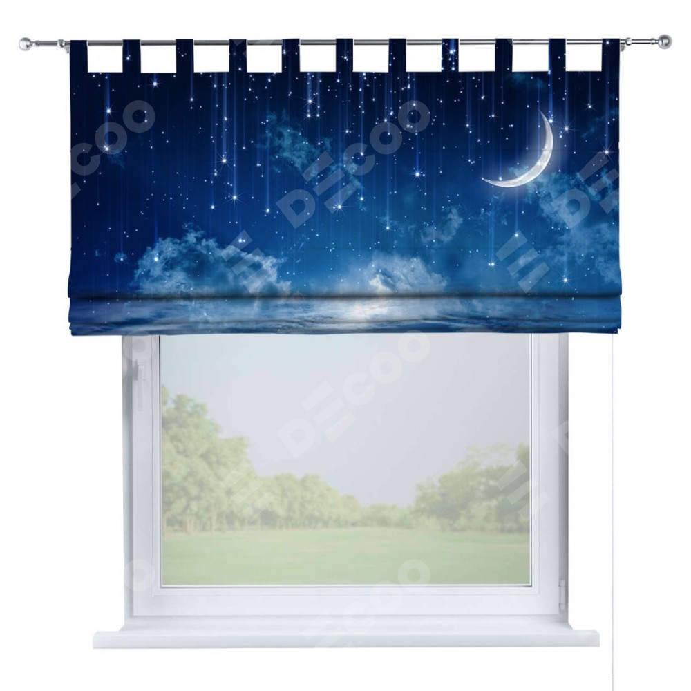 Римская штора производителя «Cortin», используется для проёма, пошита из ткани блэкаут с нанесением сублимационной печати «Ночное небо». Данная модель пошита на петлях, комплектуется на выбор круглым карнизом и подходит для монтажа на стену. Римская штора на петлях имеет простую систему регулировки высоты, отличительным преимуществом данной модели является простой способ монтажа. Достаточно повесить ее на трубу и штора готова!