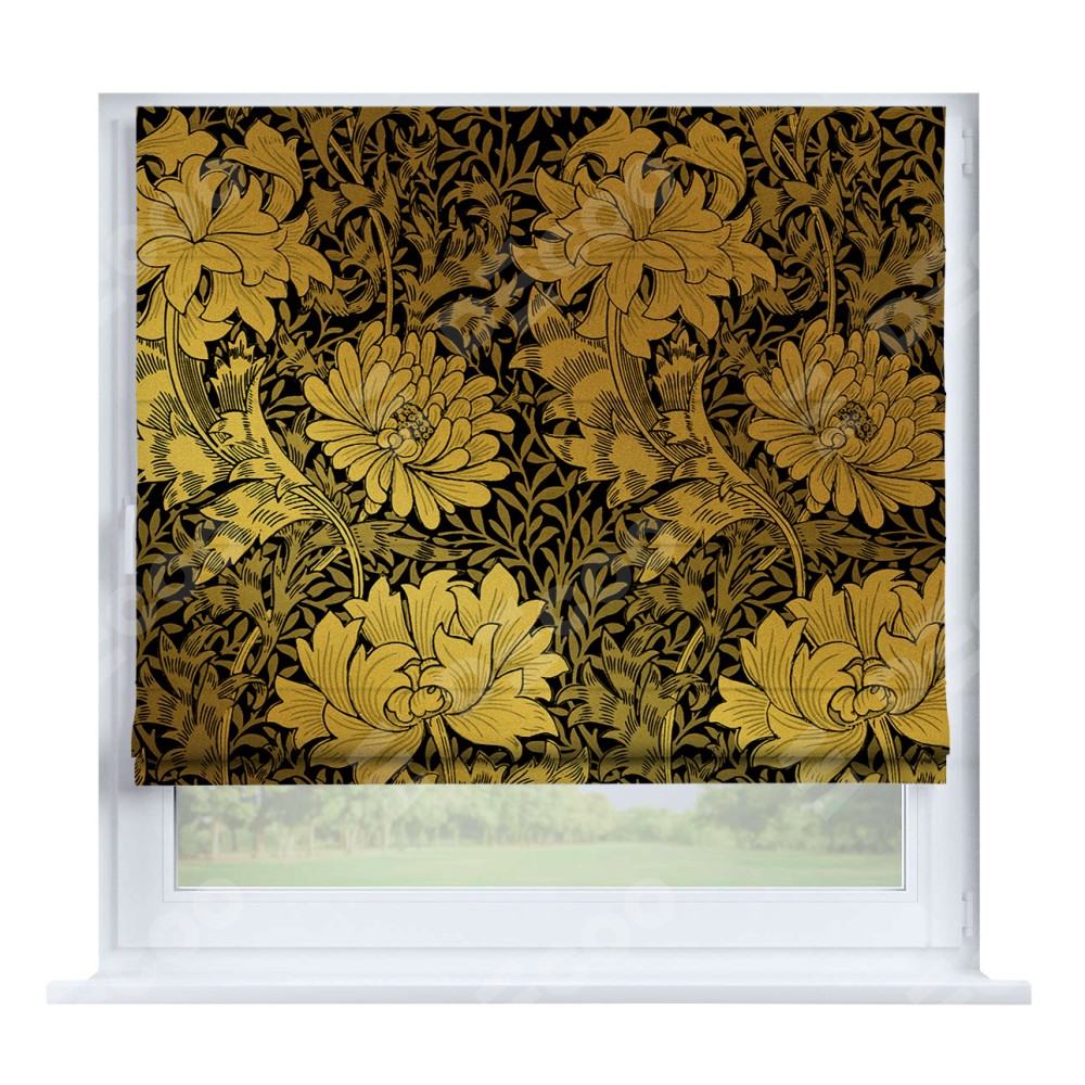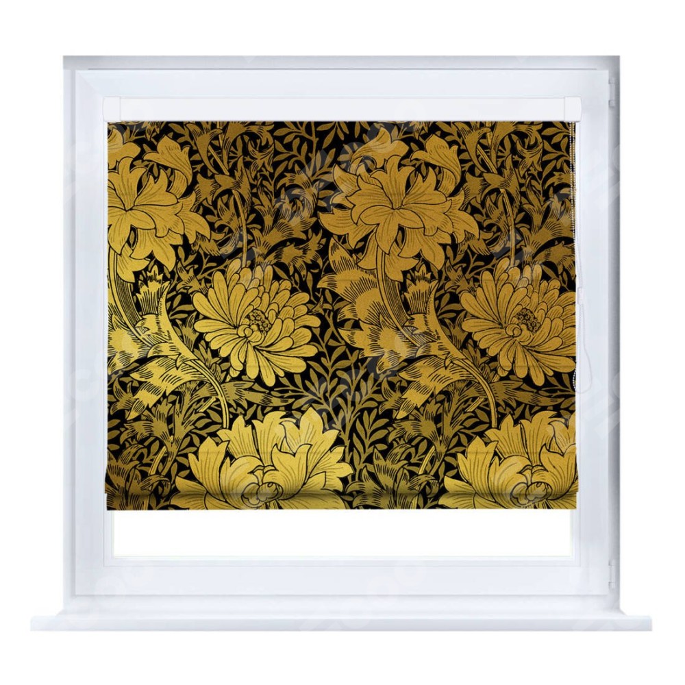 Римская штора производителя «Cortin», устанавливается на створку окна, пошита из ткани блэкаут с нанесением сублимационной печати «Ремикс морриса».