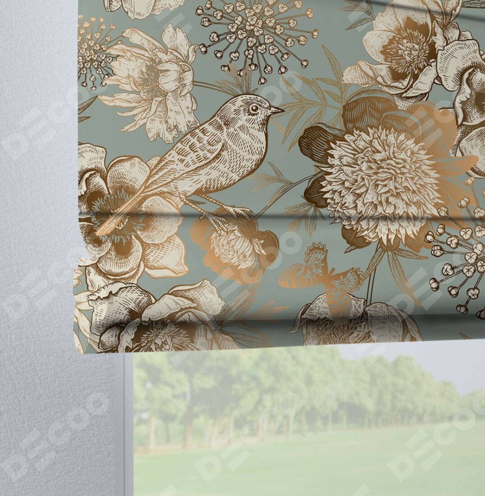 Римская штора «Кортин» на петлях «Садовые цветы» отлично подойдёт для интерьера: в гостиную, на балкон и в кухню.