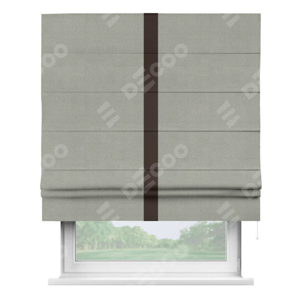 Римская штора производителя «Cortin», используется для проёма, пошита из ткани блэкаут однотонный серый, артикул ткани 88292. Отделка шторы кантом «Хайвей», ткань для канта используется из блэкаута однотонного разной расцветки на выбор. Имеет универсальный механизм и подходит для монтажа: на потолок, на стену и в нишу.