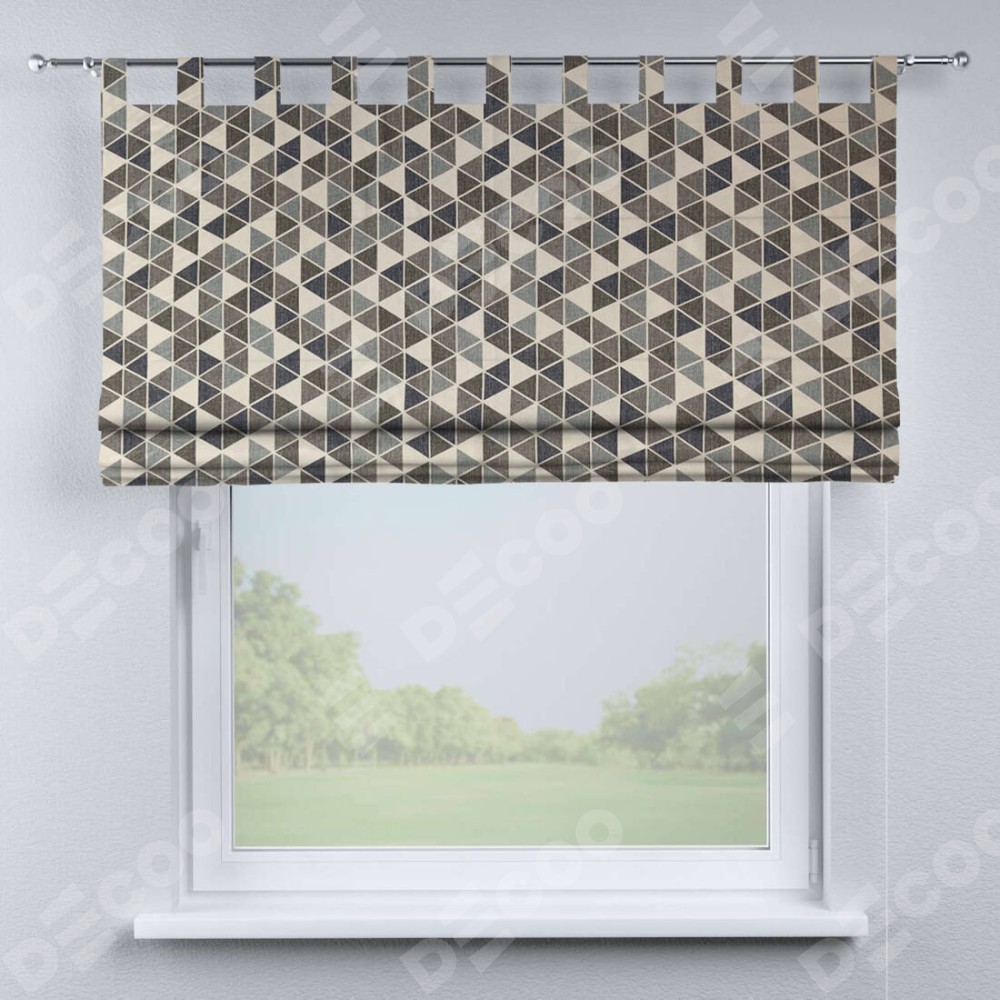 Римская штора на петлях «Кортин», ткань димаут «Треугольники синие»