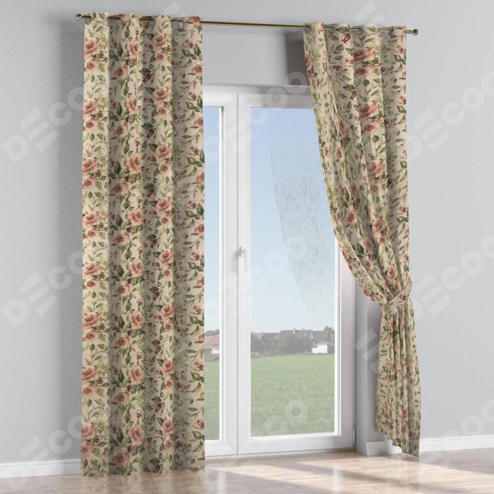 Комплект штор на люверсах ткань «Розы бежевые» ширина от 140 см предоставлена в следующих характеристиках: