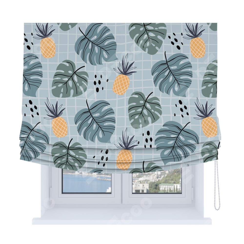 Римская штора Soft с мягкими складками, «Ананасы и листья монстеры»
