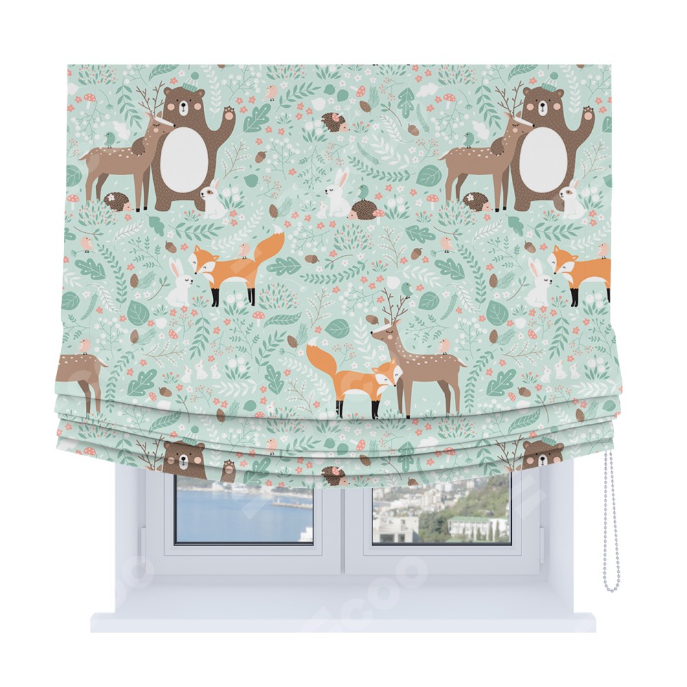 Римская штора Soft с мягкими складками, «Лесные друзья»
