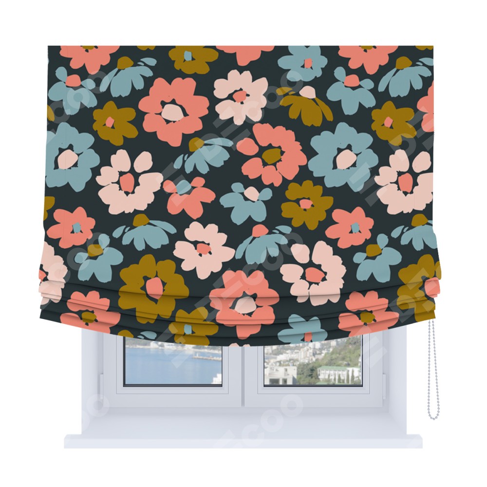 Римская штора Soft с мягкими складками, «Яркие цветы»