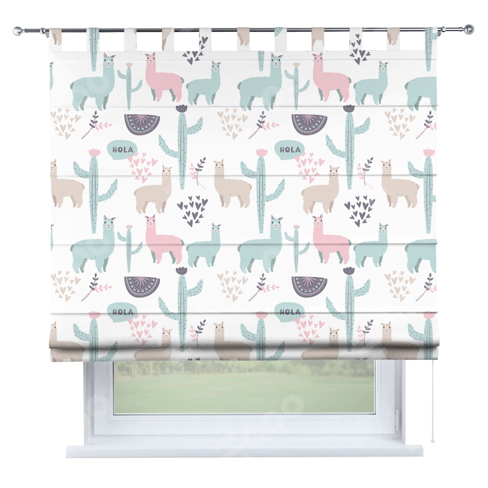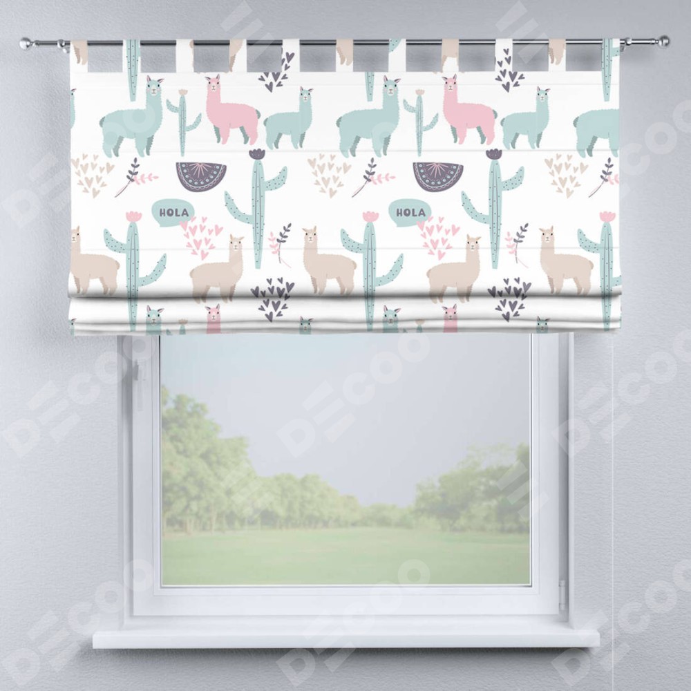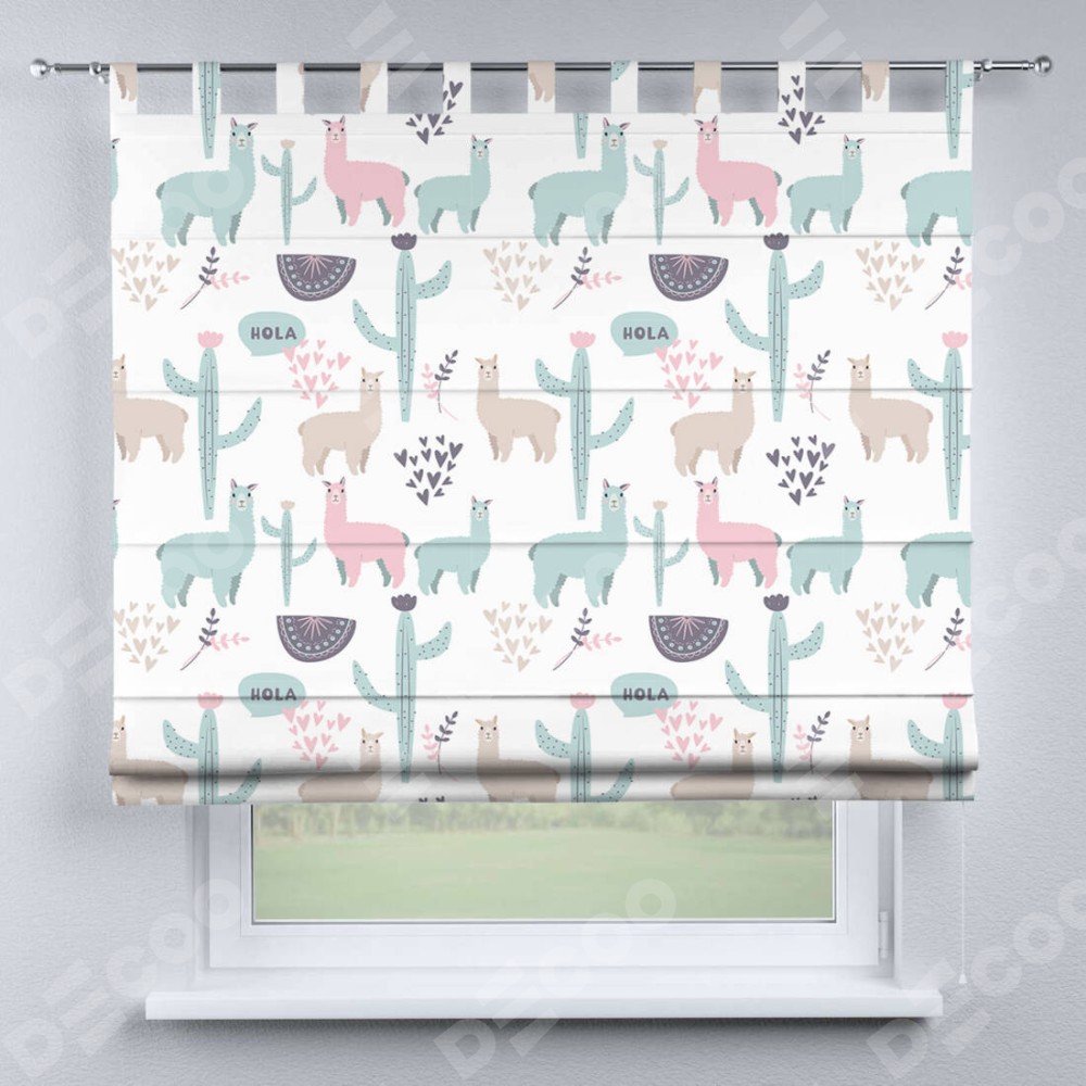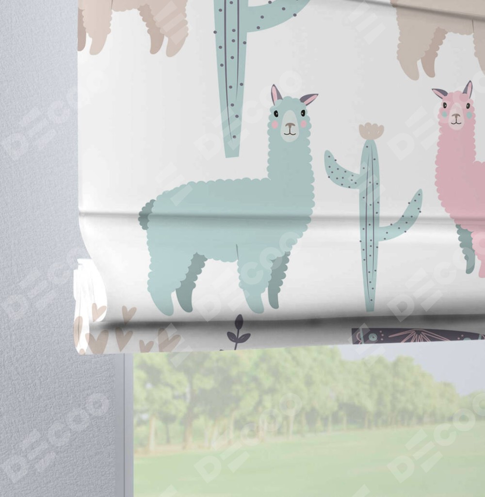 Римская штора «Кортин» на петлях «Милый лама» отлично подойдёт для интерьера: на балкон и в детскую.